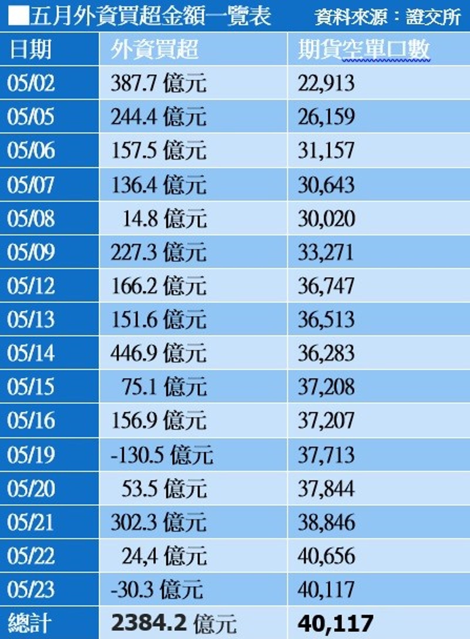 五月以來、截至(23日),投入台股的外資已逾2384億元,助推升股災反彈波段,台股漲了4300多點,收復川普宣布對等關稅時所有的跌幅。不過,法人機構表示,「外資很聰明的,他們進台幣市場,就會進股市。這波外資投入股市它是沒有方向的、不一定要有題材,為了確保套匯利益,他們買股票的同時,會去空期貨做避險。因此現在期貨空單高達40117口,很明顯地對鎖,更證明了這波熱錢是為了套匯。」