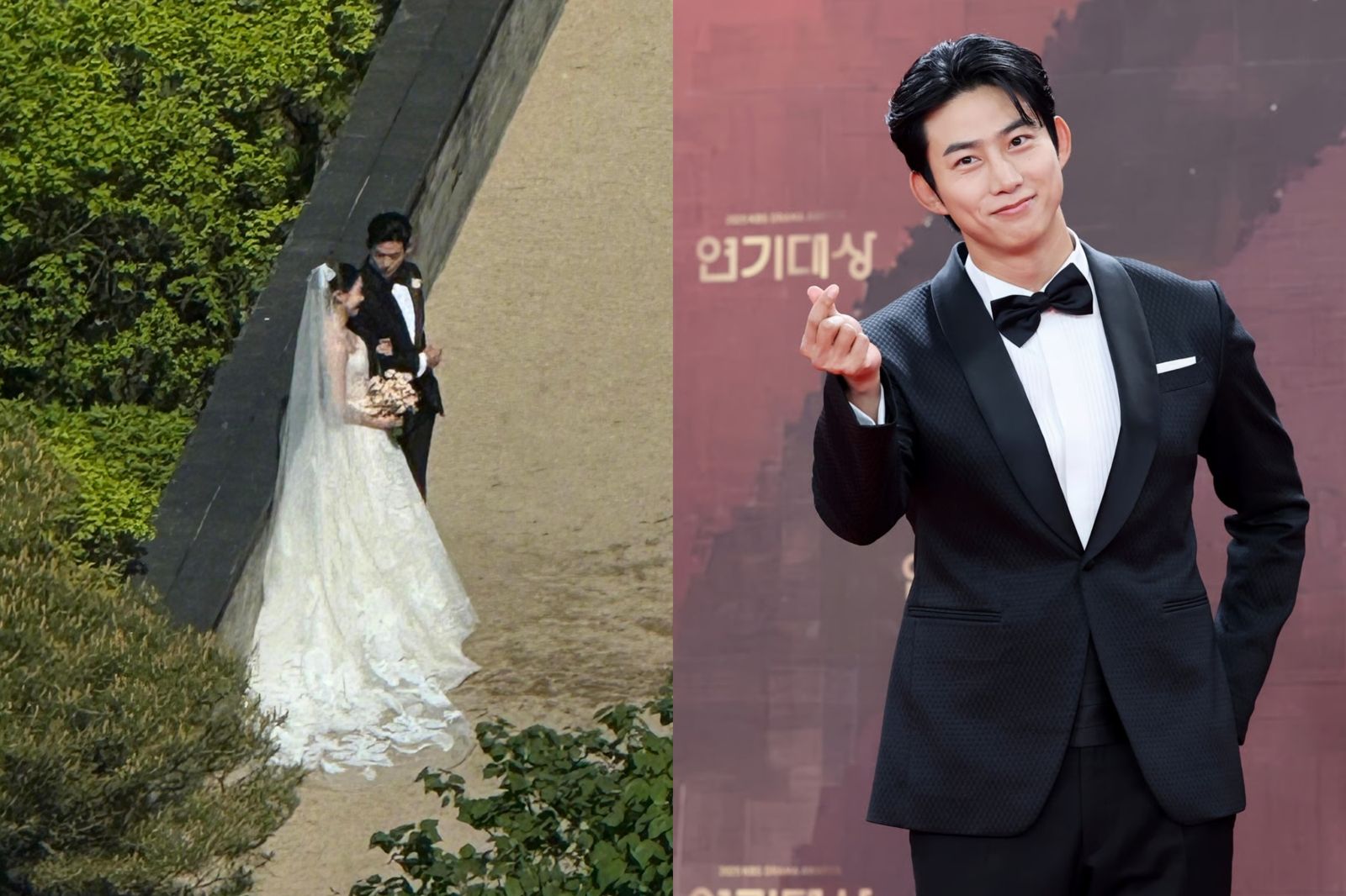 該網友今在社群分享多張「婚禮直擊照」,透露自己入住首爾新羅酒店,沒想到一打開窗戶就撞見高顏值新婚夫婦正在辦婚禮,大讚「果然是男帥女美」,也讓網友搶先一睹玉澤演穿著西裝舉辦婚禮的帥氣身影。