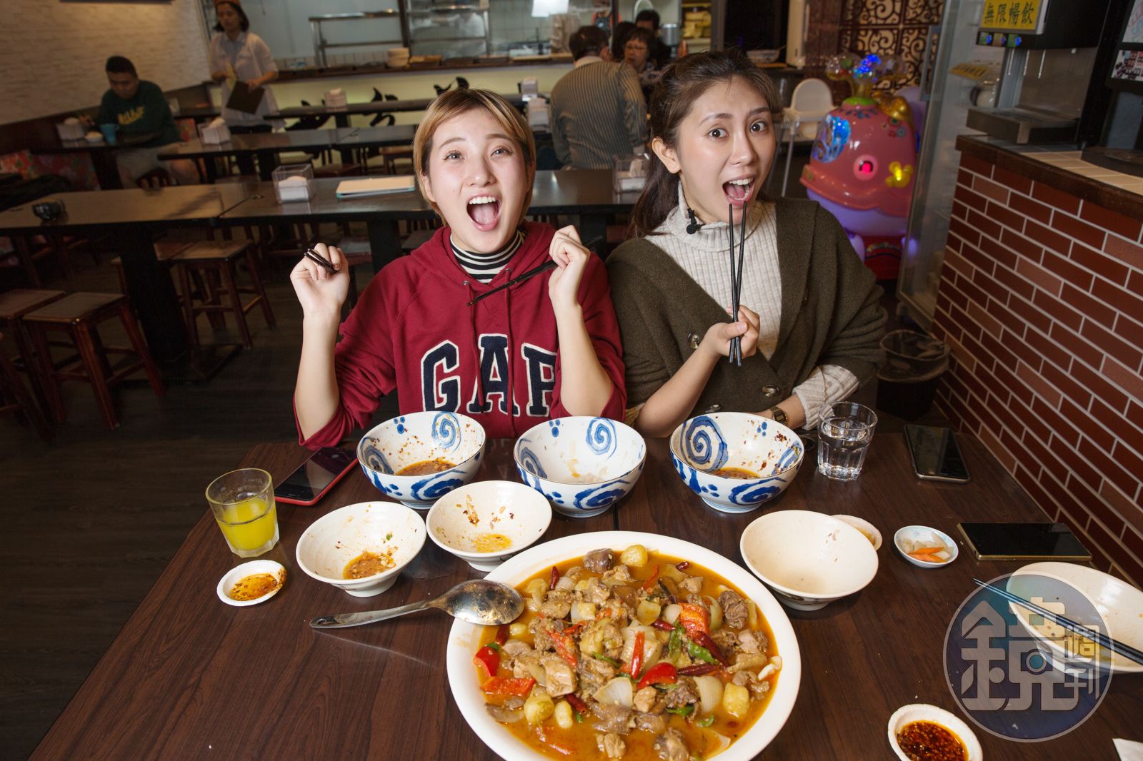 老闆新推出的「大盤雞」,也讓兩人頓時瘋狂起來,新疆大盤雞是道名菜,但映含直說:「我在新疆吃過最好吃的大盤雞,就是咱們陝西回民開的。」大盤雞中也有褲帶麵,這頓飯可讓2個女孩吃得撐了。