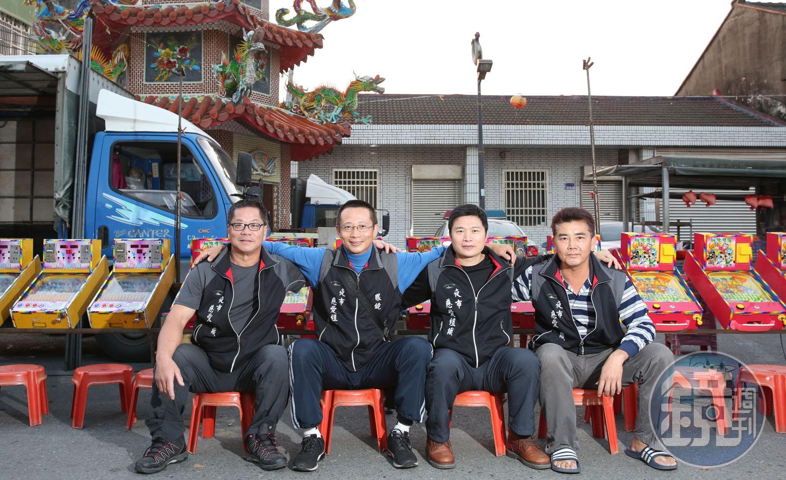 首圖:雲林夜市慈愛會由7位攤商發起,圖為其中4人:賣霜淇淋的陳金塗(左起)、擺娃娃機的陳鴻榮、賣火鍋的潘茂榮、擺彈珠檯的葉文堂。