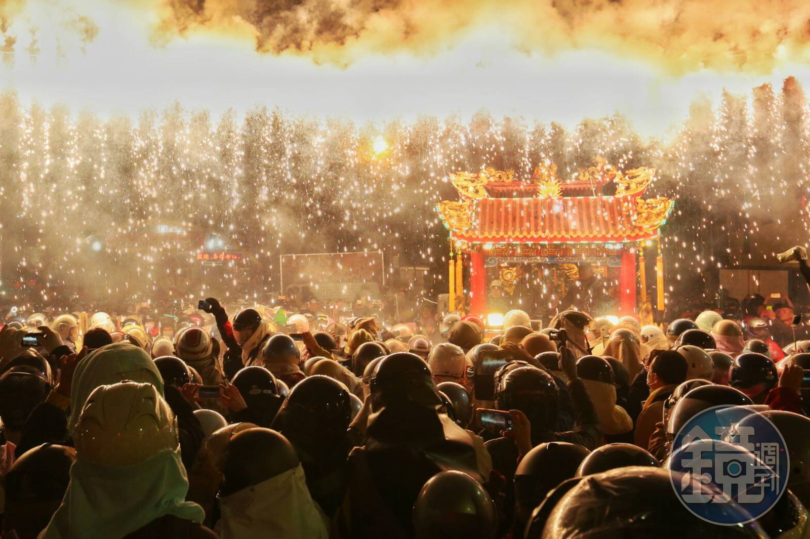 全台元宵活動盛會遍地開鑼,特別是今晚台南鹽水蜂炮最負盛名,萬發蜂炮轟炸飛射,場面蔚為壯觀,吸引著不少情侶親臨現場,體驗蜂炮萬發的刺激感受。