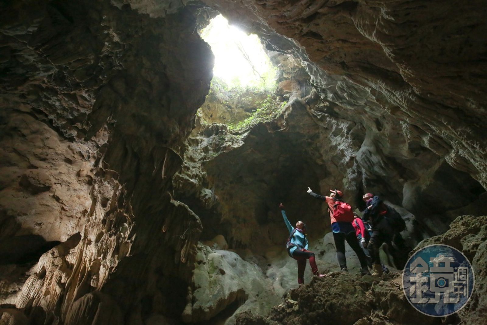 接著又到了「北峰極樂洞」,小小的洞很並不明顯,必須攀繩下至洞底,眼界所及,流線型的岩壁上呈現棕白色交流的色澤,宛如大理石蛋糕,石筍、石柱、鐘乳石結晶,即使只用頭燈照射,也美得讓人張口結舌。