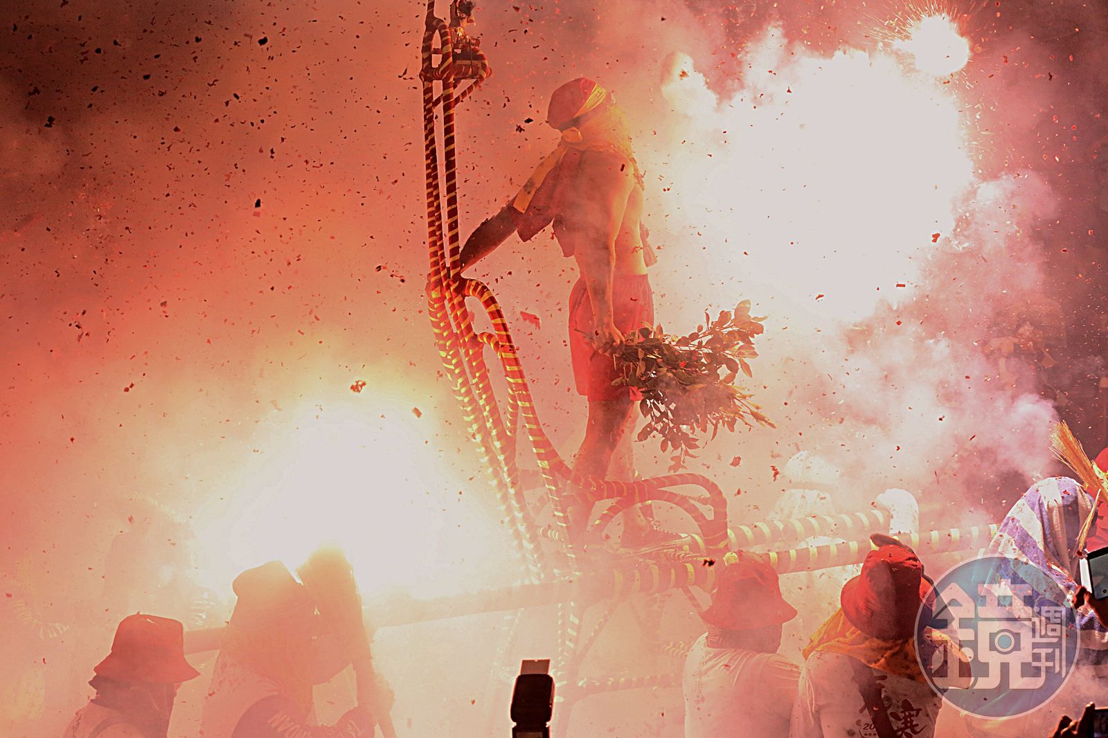 從傍晚開始,由300多名還願女信徒組成的繡旗隊,就吸引不少民眾目光,而福德彌勒團、神童團、太子團等數十個陣頭,更是依序替媽祖繞境儀式開路。
