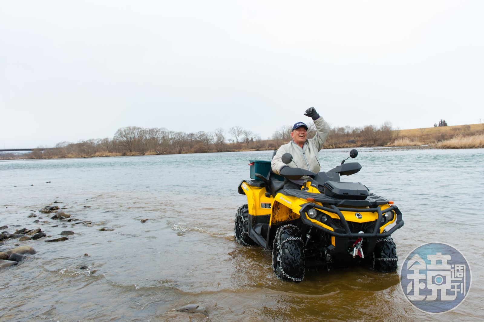 我遇見這一票熱血歐吉桑,大約在冬末初春,本來預約好要飆雪,沒想到雪融得早,放眼一片泥濘,我心想這下沒搞頭,沒想到老頭兒放話說:「照玩不誤!」大夥換穿雨衣、雨鞋,笨手笨腳爬上鐵牛車,一路搖晃到河床旁,車輪陷在爛泥巴,「下車,換騎變速車!」老頭兒又發號施令,大夥面面相覷,心裡想的是同一件事,這不摔得四腳朝天才怪。