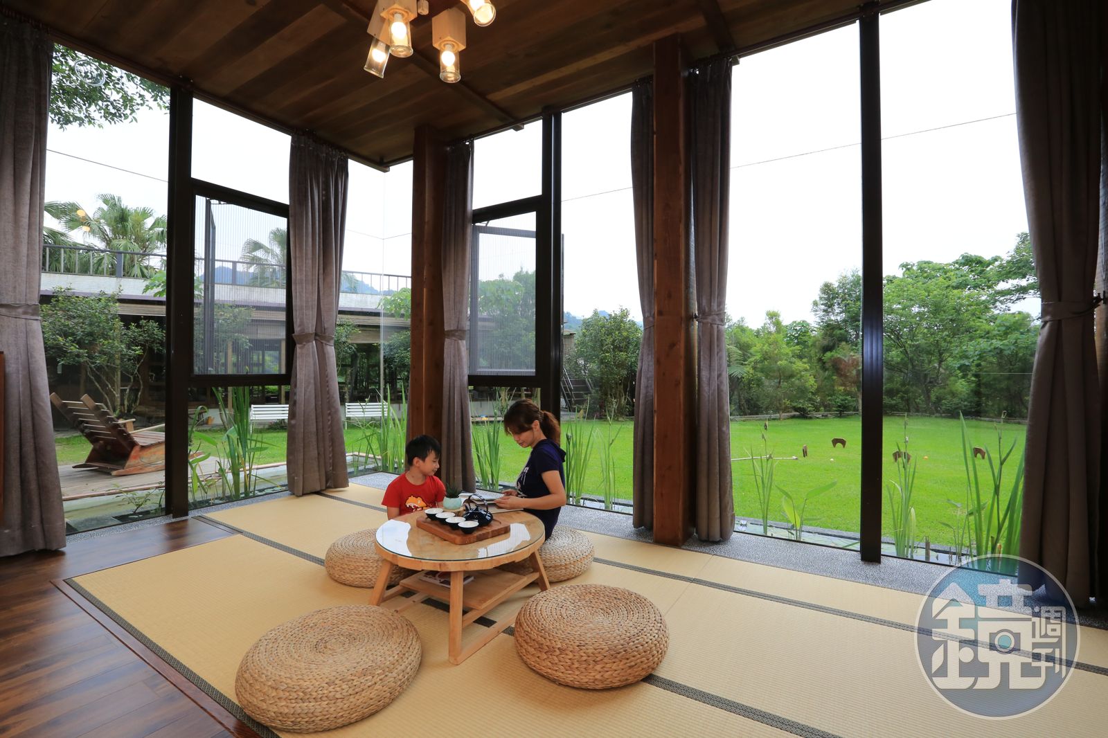 「房子的主結構7個月就完工,不過,木頭家具卻花了我2年時間才做好。」阿楠憨笑說。走進玻璃盒似建築,滿屋子透出木頭溫潤,小木桌、電視櫃、衣櫃看得見年輪,筆筒樹、漂流木燈具自然有型,連大床都是阿楠親手釘的。
