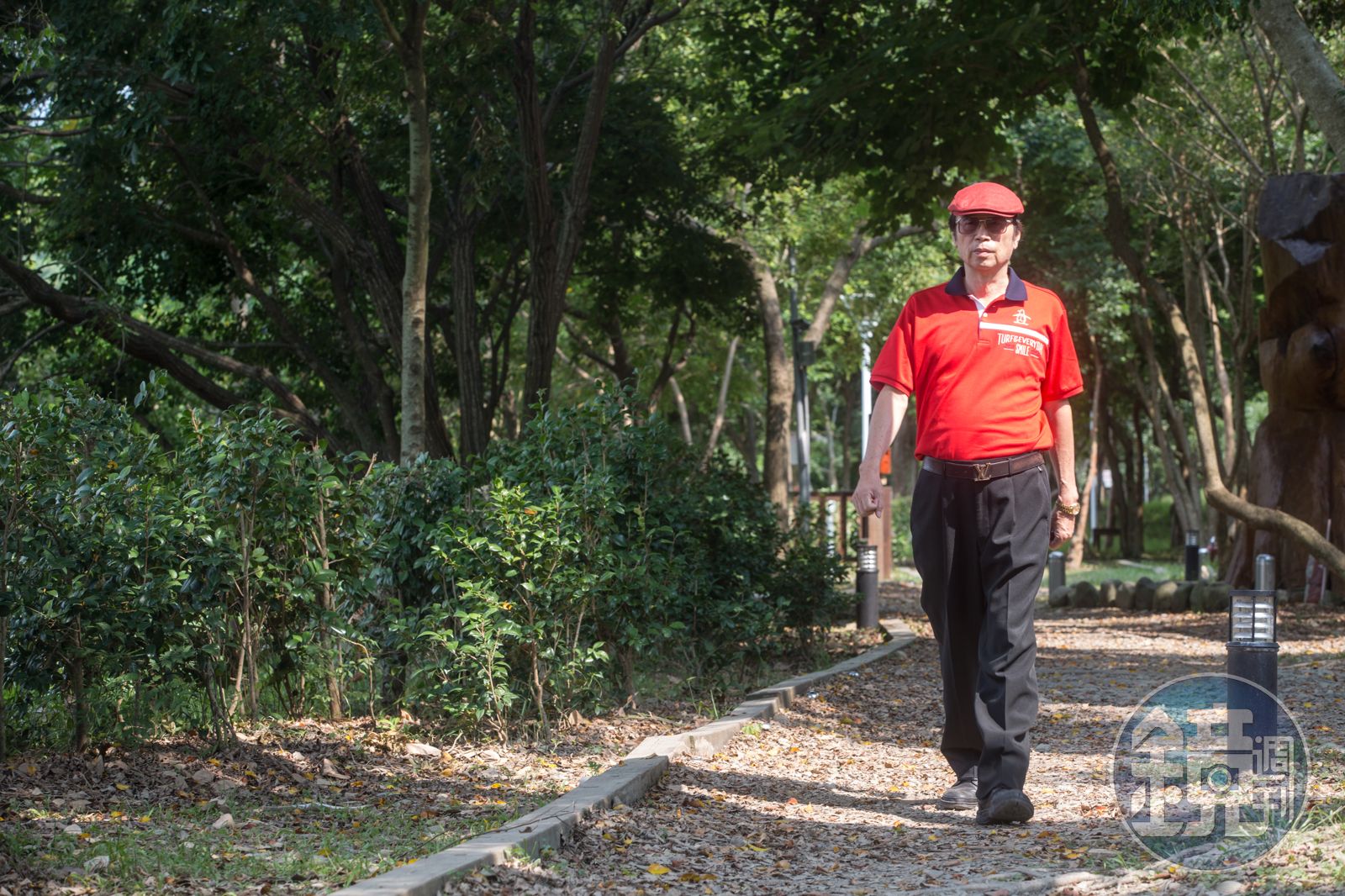 在台中的公園裡,只見蘇松泙一邊健行,一邊盤點價格、思考要不要買進某檔股票,有時即使太太在旁邊,他也會陷入忘我的思索,「老婆都笑我是瘋子,路人可能以為我是神經病。」