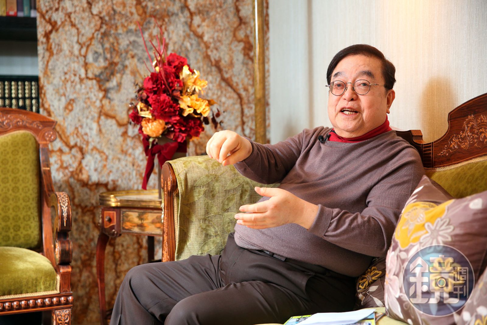 11月15日,穿灰上衣、黑西褲的蔡辰男在他經營的頂級餐廳「海峽會」受訪,雖然年屆77歲,但他臉色紅潤、說話鏗鏘有力,暢談藝術經,蔡辰男帶著本刊,從董事長辦公室看起。