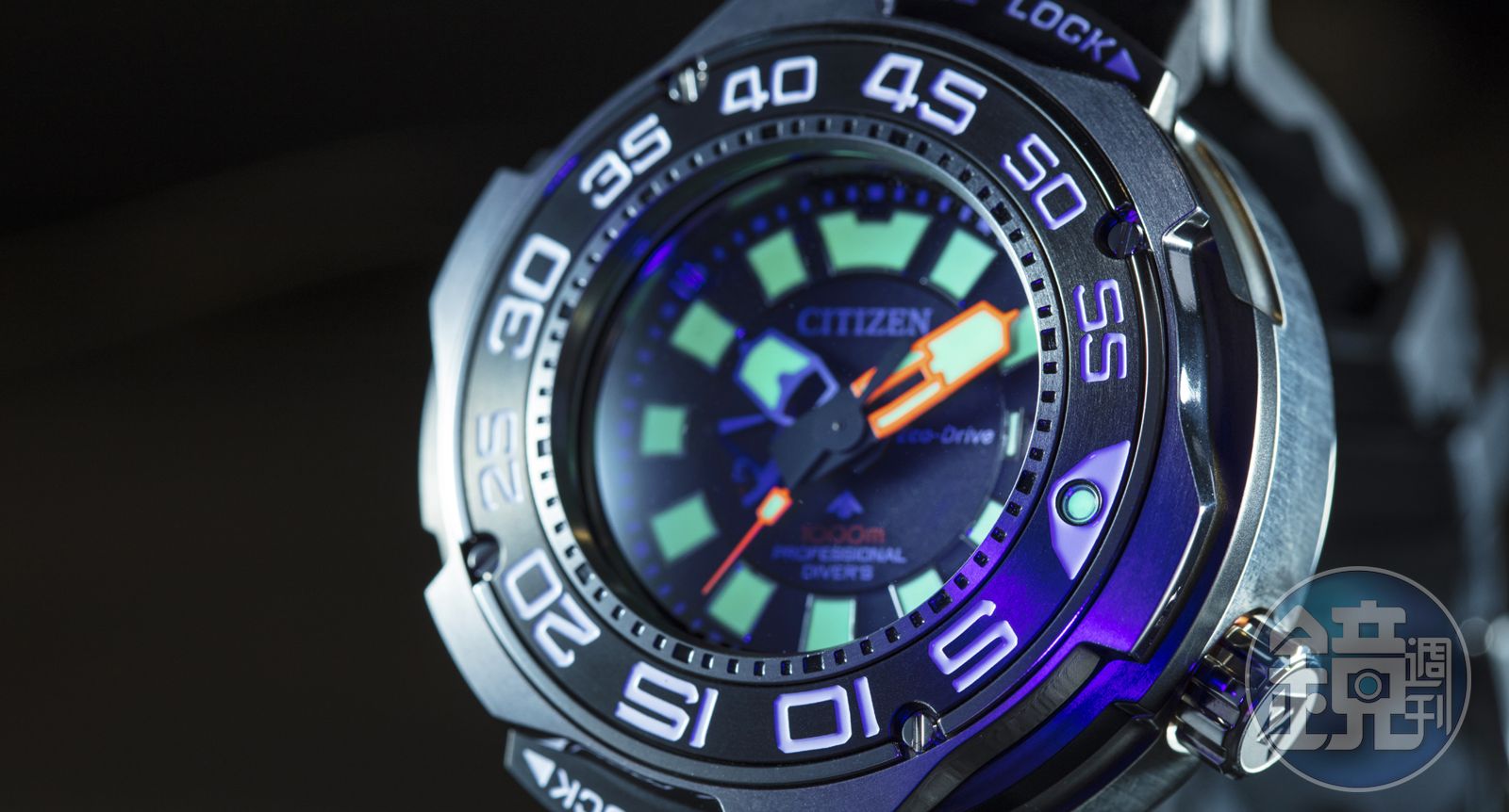 T:我個人有一個比較奇怪的想法,這款腕錶讓我想到日本的科幻卡通或是漫畫,有很重的動漫風格。其實就如你所說,日系潛水錶在造型上確實有點誇張,但這也是其最大的魅力所在!如SEIKO的Prospex潛水錶(俗稱鮪魚罐頭)跟CITIZEN的這款Promaster 1000m,就是一個非常好的例子。而其實在腕錶玩家中,有一類的人很注重數據與錶款的科技含金量,而這款腕錶具備了1000米的防水深度、特殊的航太材質(鈦)、以及旋轉錶圈的鎖定裝置,無論是機械控或是機能控,這只腕錶肯定就是他們的夢幻逸品了!