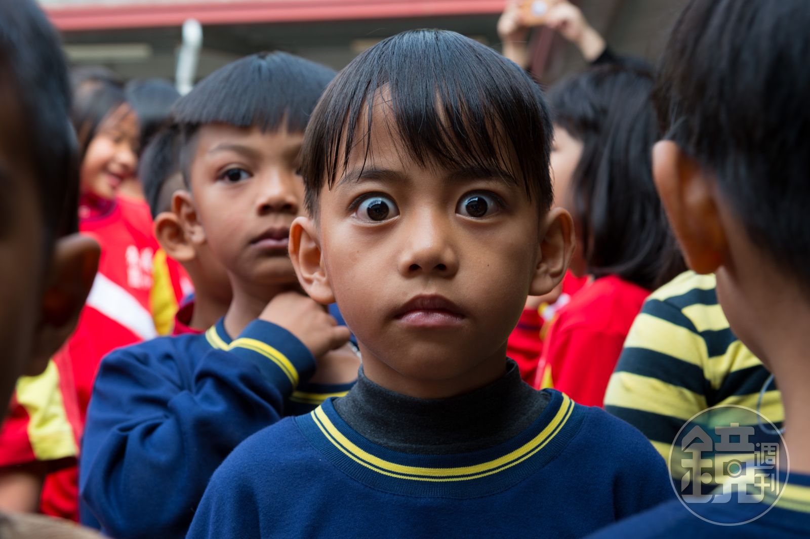 我對著其中一位小朋友說:「哇!你的眼睛好大好帥啊。讓叔叔拍一張照片好不好啊?」於是接下來的每個跟他四目相交的時刻,他的眼睛就非常用力地撐大讓我拍照。