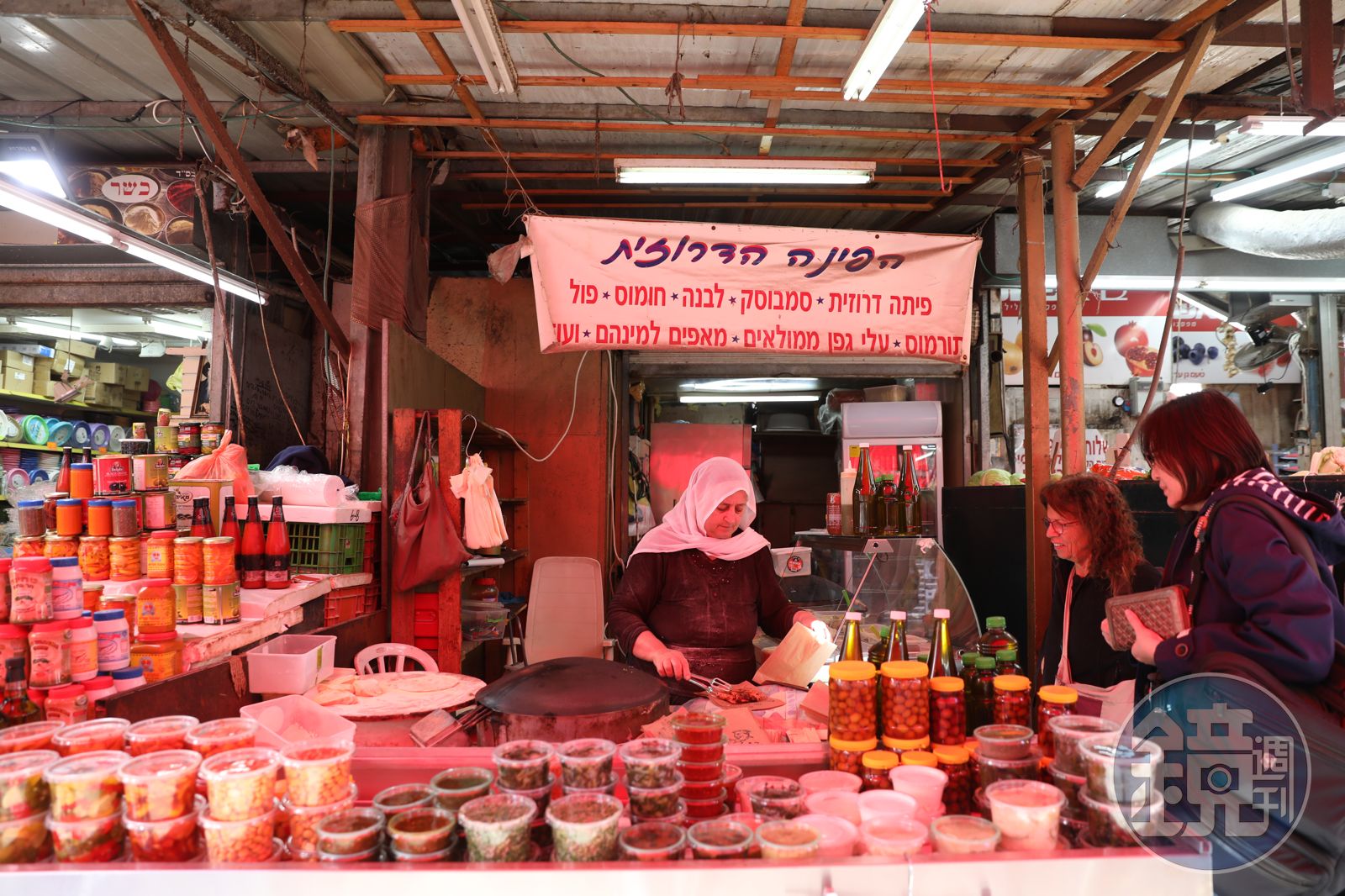 Carmel是一個長條形的市場,一攤攤認真地逛、慢慢地看,至少要花上2個多小時,我先是試喝本地產的初榨橄欖油,柔滑清香,舌根無刺辣感,相當美味,當場採買幾罐,又在雜糧行買到店主自豪口味的混合米飯,裡頭有小扁豆、印度香米與茴香、蒔蘿,也好奇入手幾款可直接撒在沙拉上的綜合香料,準備回台灣試做以色列大餐,唯一可惜的是無法將最愛的漬鯡魚帶回家,只能留在記憶裡慢慢回味了。