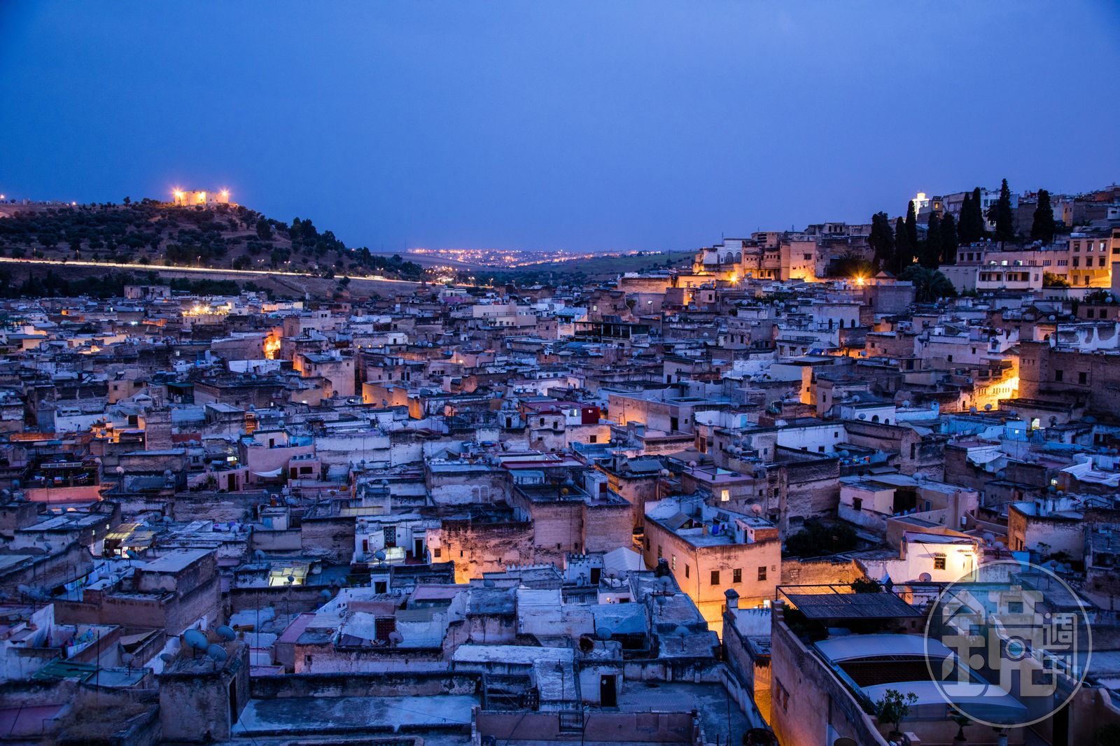 這回我們選擇搭乘巴士旅行摩洛哥,COSMOS巴士從卡薩布蘭卡集合,抵達非斯的時候,已經是傍晚時間。輾轉換了計程車,進入非斯古城已經是傍晚7點。摩洛哥的夏季天暗得很晚,近9點才日落。我拉著行李,從古城的一頭走進。土色的牆壁分隔了非斯的新城與舊城,在穿過城門後,時間便一下被劃分開來,進入西元12世紀的背景裡。