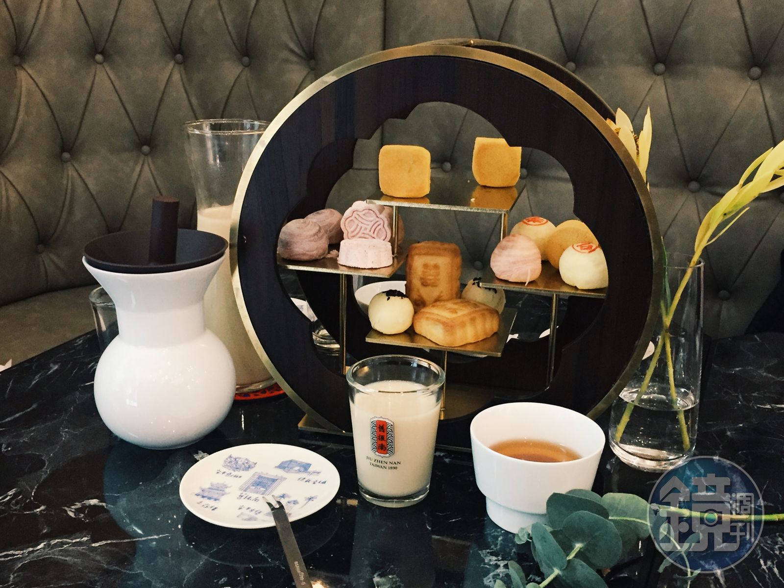 暱稱為「九小福」的下午茶糕點,還少了1小福,原來有一款是舊振南和華人冰王「蜷尾家」合作的限定雪餅,酥香扎實的餅皮搭配桂花荔枝口味的雪酪,沁涼爽口,整套迷你漢餅午茶套餐只在台南有,強強聯手,展現傳統中的新意象。