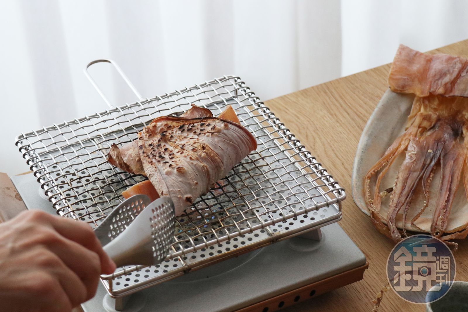 想要中秋烤肉同歡,卻又不想燒炭製造過多的油煙,搬個卡式爐到陽台上架個金網,買個乾魷魚放上去,一路香到隔壁三家鄰居。其他像是菇類、大蝦、玉米、櫛瓜也都能透過金網均勻的受熱,烤出飽水不乾柴的口感。