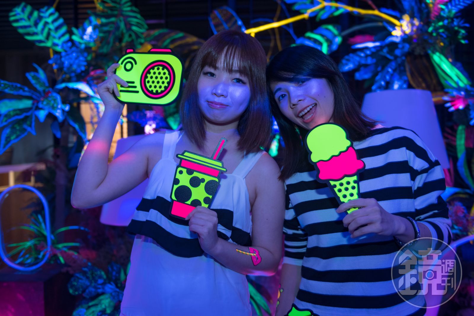 晚上8點一到,飯店餐廳成為適合全家一起同遊的「暗黑派派」,在特殊光源照耀下,黑暗中許多東西發出螢光,全家大小輕鬆赴約,不用盛裝打扮,個個「閃閃發光」。