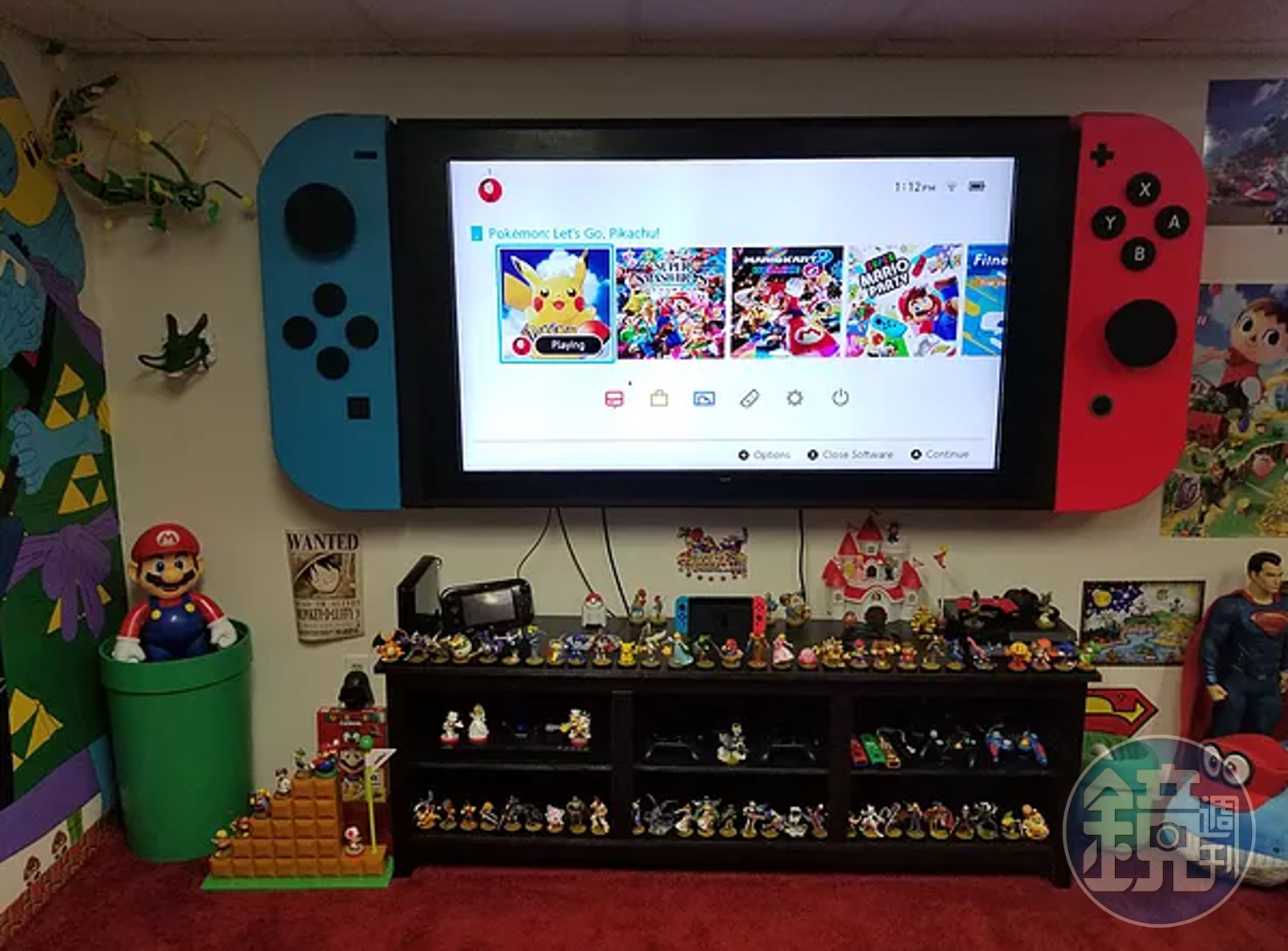 suprman9表示,他是在2018年的夏天打造這間以電子遊戲為主題的的房間,裡頭最吸睛的莫過於一台65吋的巨大Switch造型電視機,並在網站公開製作過程。