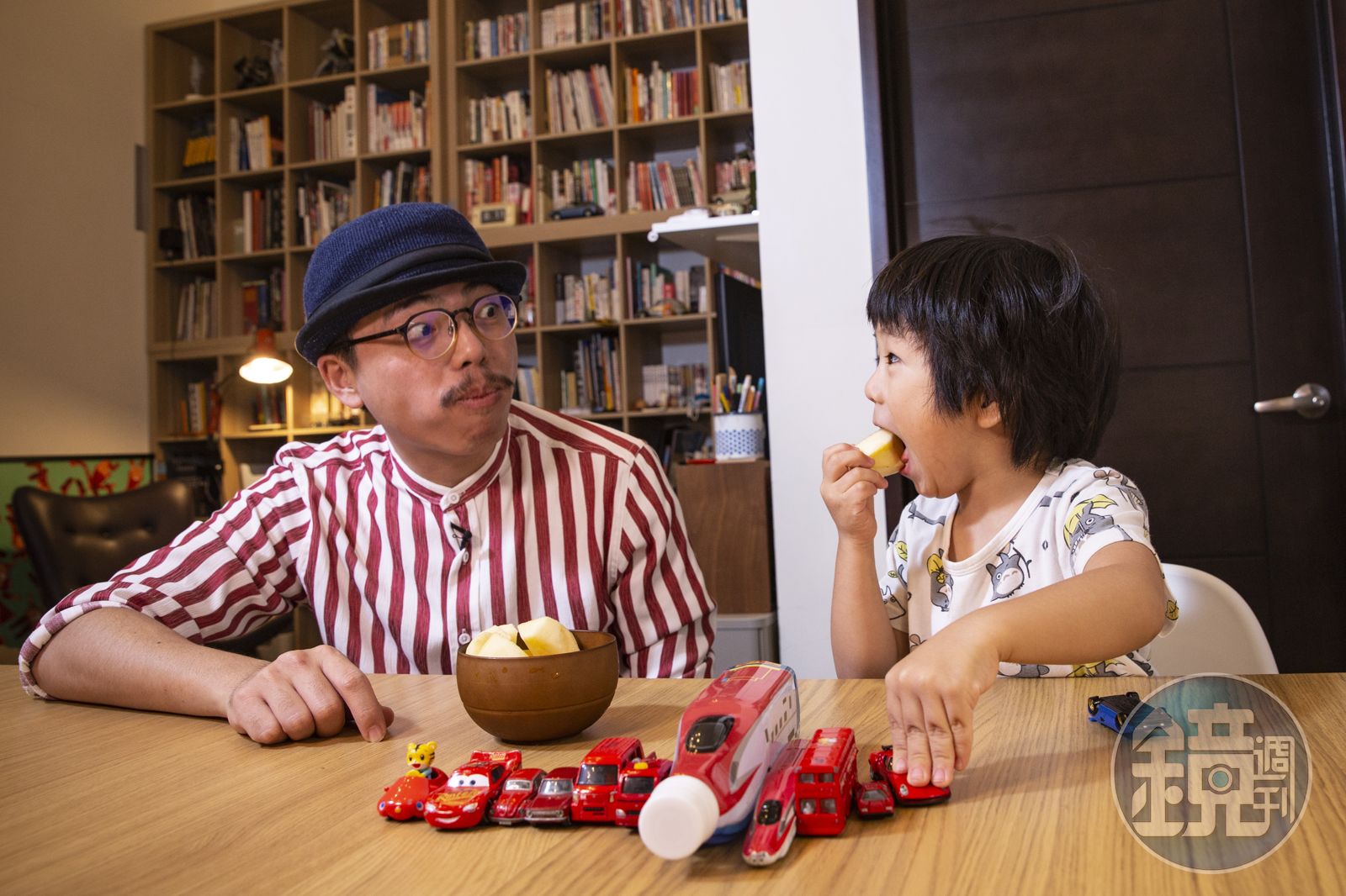 但畫家生活不穩,父母對他並不諒解。「他們都是公務人員,很不能體諒我們這種做創作的,有一餐沒一餐的。」沒錢時甚至得跟父母開口,「他們會擔心呀,就跟我說『你小孩子都生出來了,是不是應該去找份打工,路口那個速食店有在徵人,要不要去?」雖是關心,對他卻相當刺耳,「聽到這些我很難過,一來是你怎麼這麼不認同我的工作,二來是我怎麼這麼不孝,讓你擔心成這樣子。」直到這兩、三年他創作育兒插畫打響名號,有出版社找他出書,收入穩定後,父母才比較認同他做的事。
