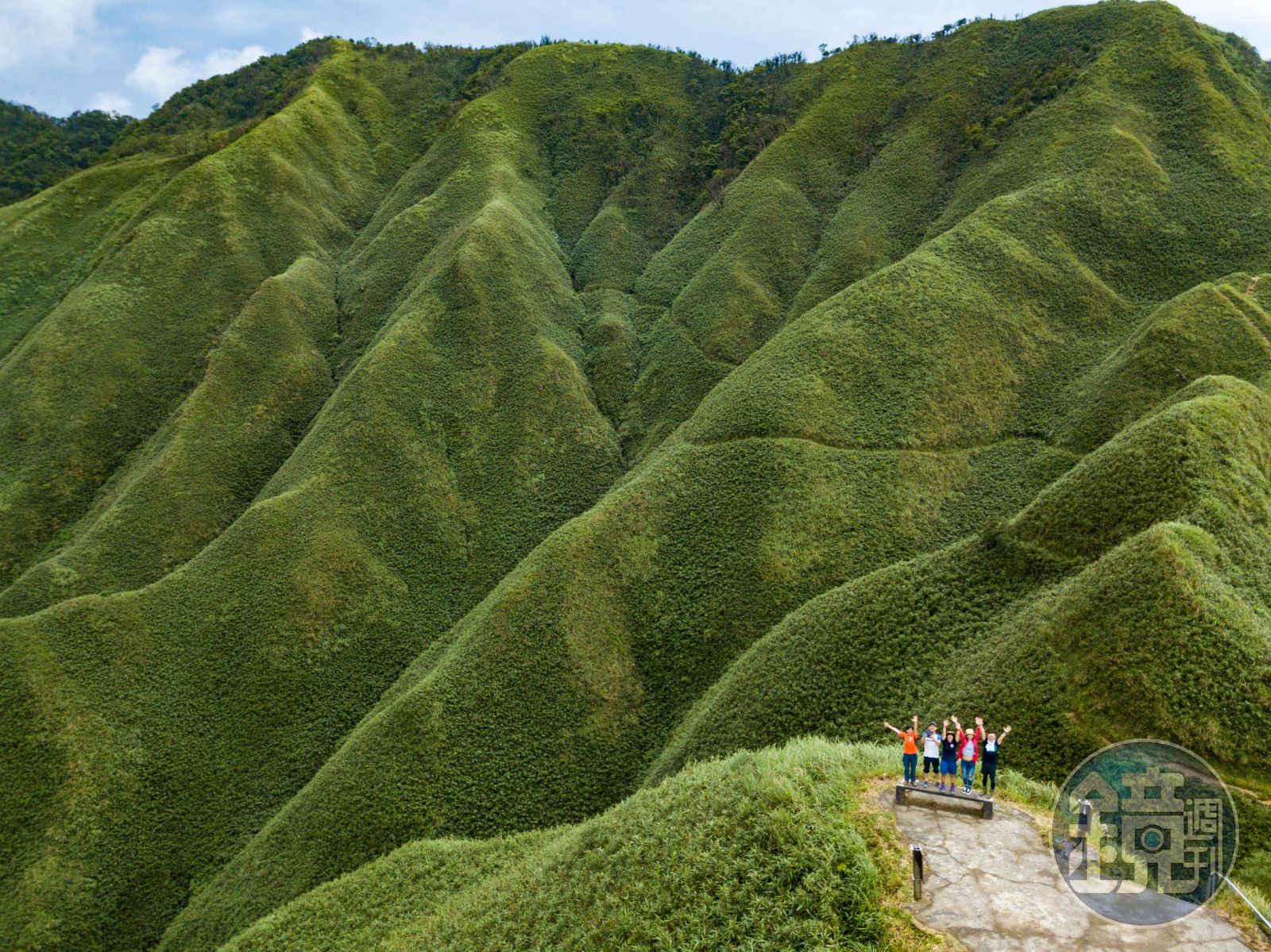 清晨時還是灰濛的天際,在我們攀登於頂時,天空突然裂開大縫,灑下一片透徹光線,照在連綿山峰上。初夏季節的飽滿青綠,染過整片山頭。山的柔軟在那一刻,宛如抹茶冰淇淋般,綿延在眼前。