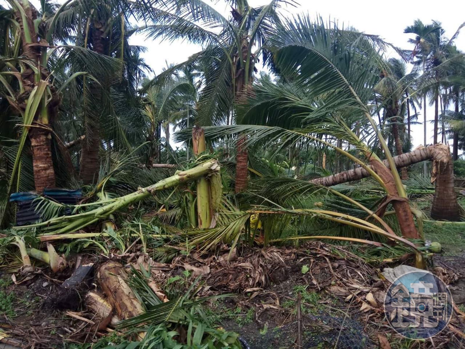 南州、林邊兩鄉公所初步調查,合計近百戶民宅和農舍受損,農地逾百頃田,其中蓮霧園占8成,達85公頃,受損逾千萬,另有13公頃的香蕉及3公頃的椰子。