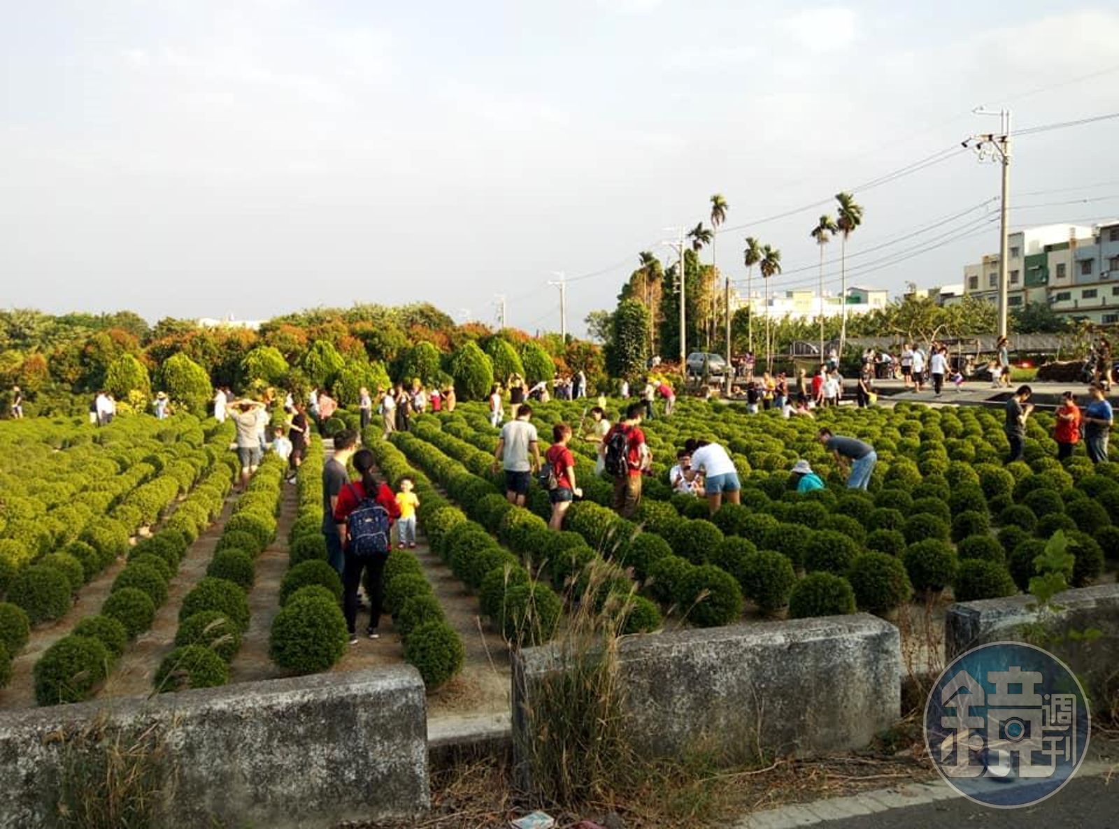 台版波波草祕境就位於彰化田尾中正路二段與田仁路交叉口,4千多株的細葉七里香是台灣常見庭園植物,在地主細心呵護修剪下,外型圓潤,狀似國外的波波草祕境,因此爆紅吸引大量遊客前往朝聖。