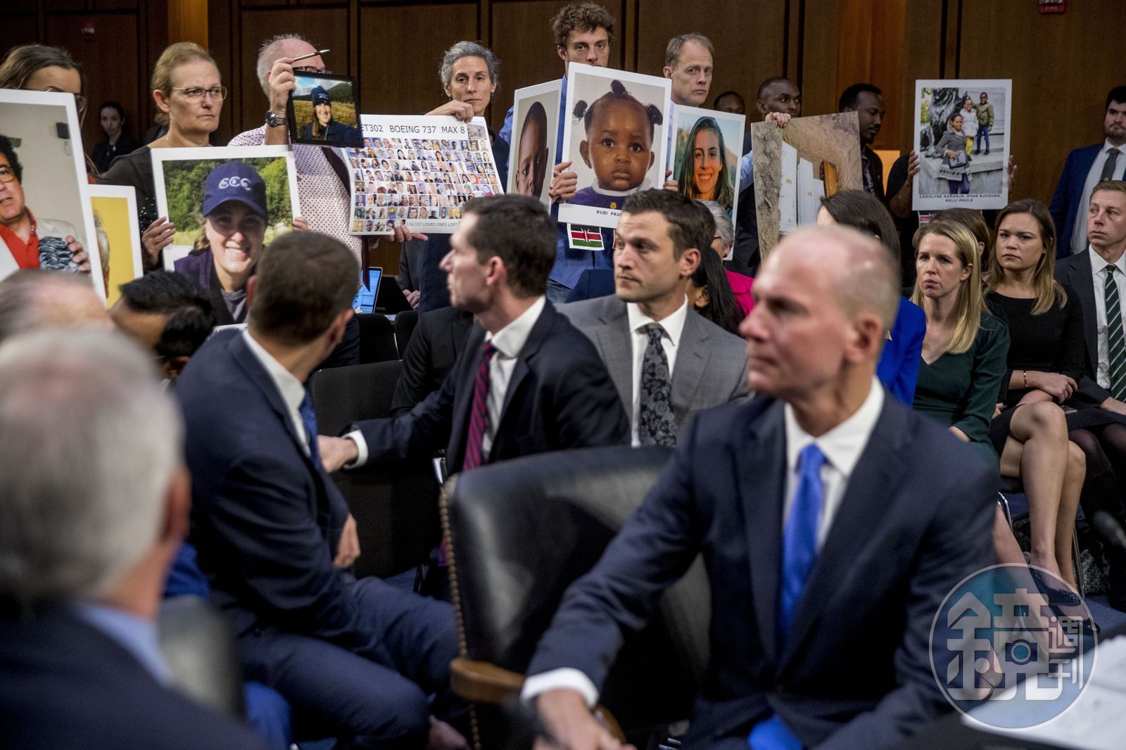 據《華爾街日報》的報導,波音目前至少面臨150起墜機罹難家屬的訴訟。部分家屬拿著罹難者照片出現在聽證會上。