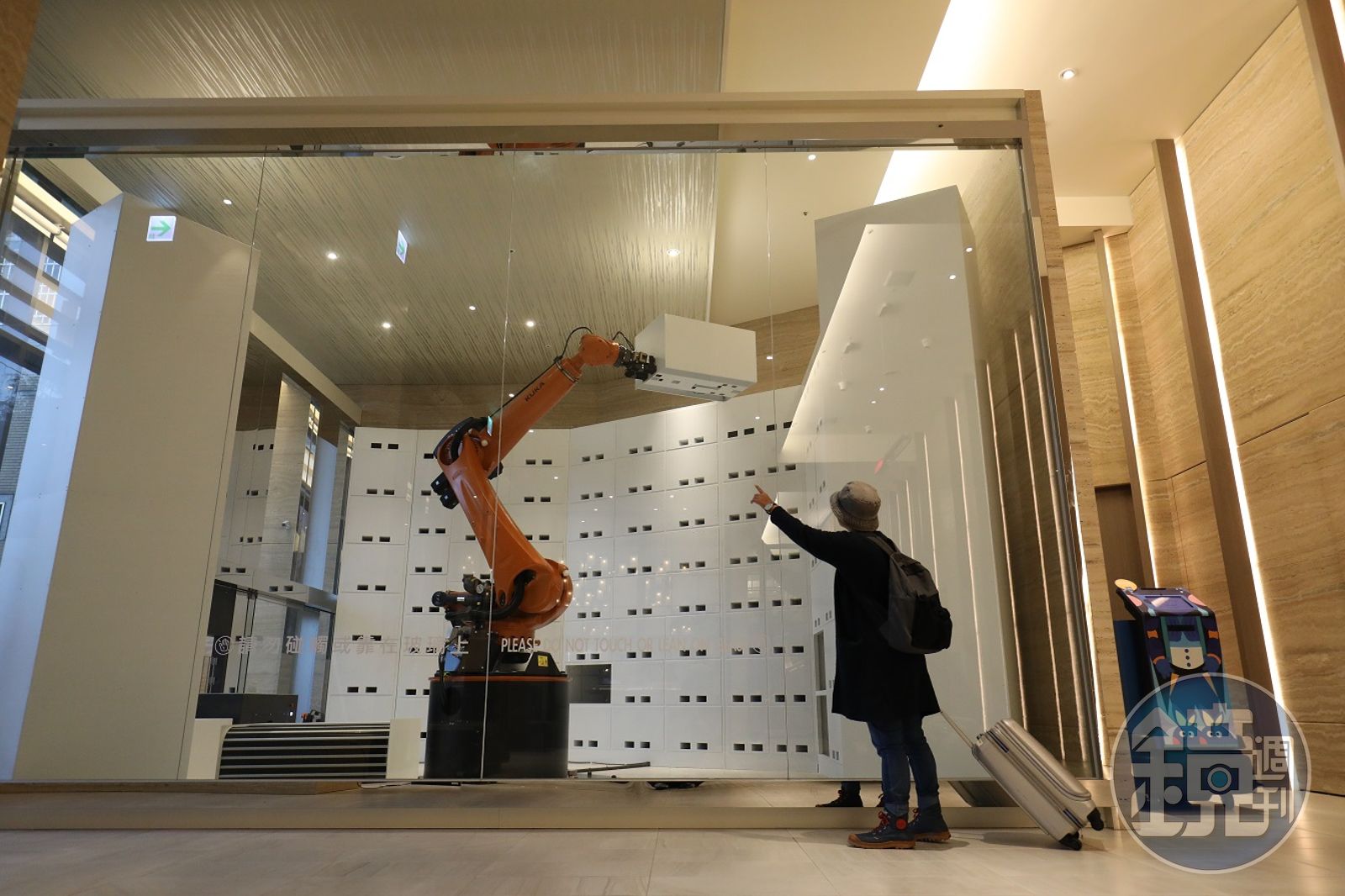 飯店大廳可以看見巨大的機械手臂,用來存放行李。