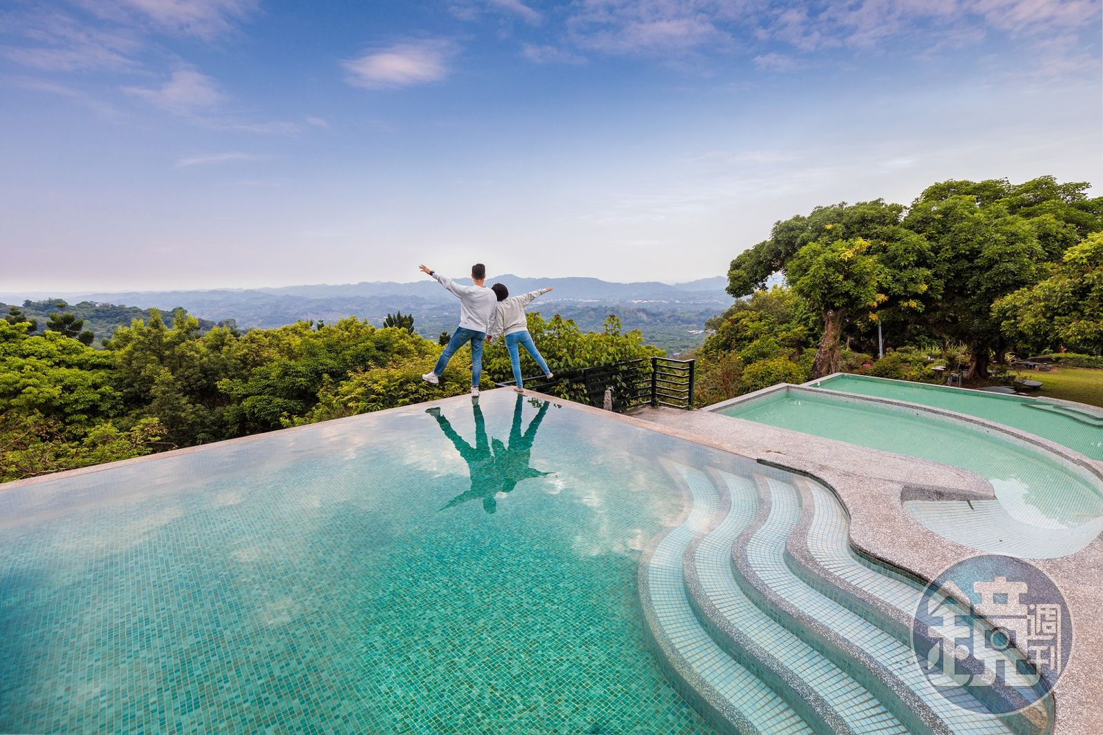 位在山頂上的「本味作坊」是遊客們最愛的景觀平台,草地上有可愛小豬、母雞與小雞自由奔跑,逗得小朋友樂不可支。引自山泉水的無邊際戲水池,是情侶拍照取景的好位置;或是坐在名為「雙木林」的2棵茄苳老樹下納涼,點杯「龍眼花茶」搭配包入甜香桂圓的「桂圓泡泡」,自在欣賞嘉南平原風光。