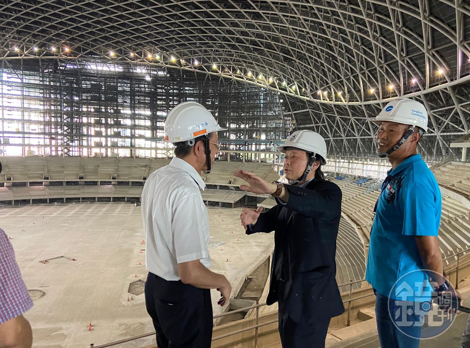 對於大巨蛋即將復工,王世堅(右2)po文痛批柯文哲與趙藤雄,更傻眼直呼「停工5年的大巨蛋竟然像變魔術一樣都快完工了!」(翻攝自王世堅臉書)