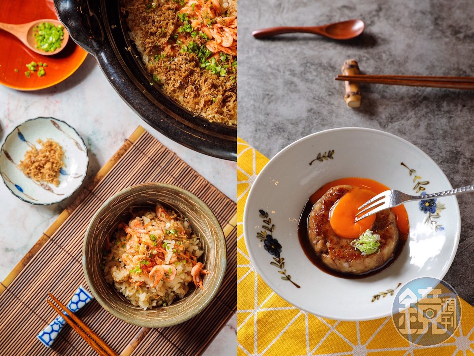 吸潤高湯鮮味的「櫻花蝦炊飯」,米粒挺實飽滿。(680元/1合米2人份)(圖中拍攝為4合米10人份2,720元)招牌「雞肉丸」打上鮮蛋黃,鹹潤腴美。(250元/份)不醃直接清炸的名古屋流派「元先手羽先」,皮酥肉鮮。(210元/份)鑊氣包圍的「鰻魚肝炒自家辣油」 調味飽滿。(380元/份)在阿鑫主場的板前空間有一面食器櫃,全是他奔走日本蒐藏多年的碗盤,除了有東京「銀座うち山」日料主廚送給他的菜盤老件,他每回旅行都會親自挑選器皿。這些杯盤外表樸實,甚至有些粗糙感,但和他的料理交織成小幅畫作。阿鑫的憨直與熱情,都在他一往情深的碗盤及小料理之間表露無遺。