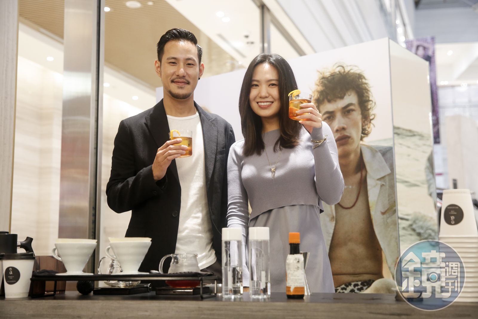 王策(左〉與表妹孫盛希連袂出席ALLSAINTS X VWI咖啡快閃店活動,並現場示範煮咖啡。發布時間:2020.07.13 18:35 臺北時間