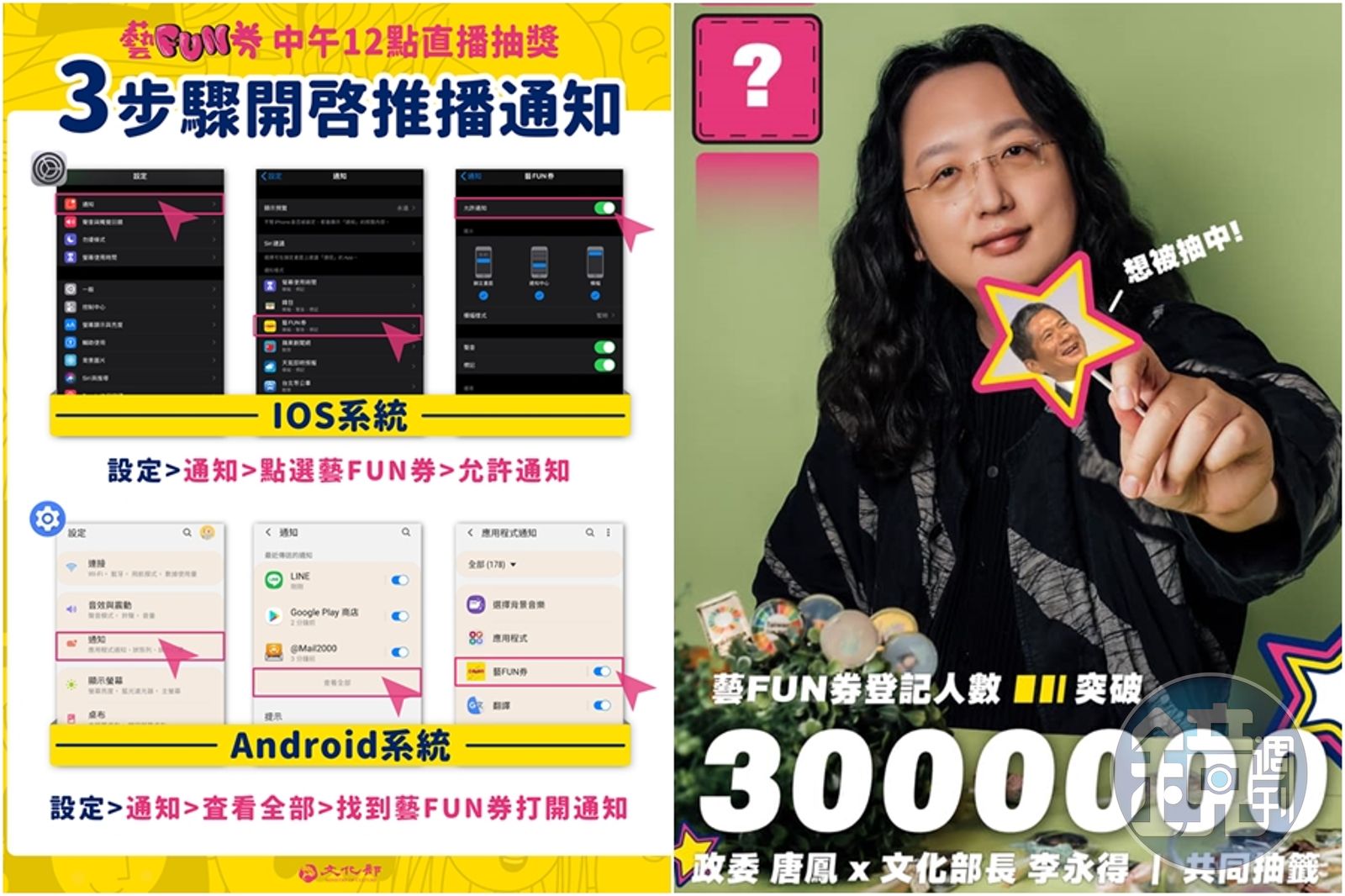 無法觀看直播的民眾,手機只要「3步驟」打開「藝FUN券」App的推播通知,就能第一時間收到中獎訊息。文化部也將於今天下午3點,陸續以App推播及手機簡訊通知中獎者。