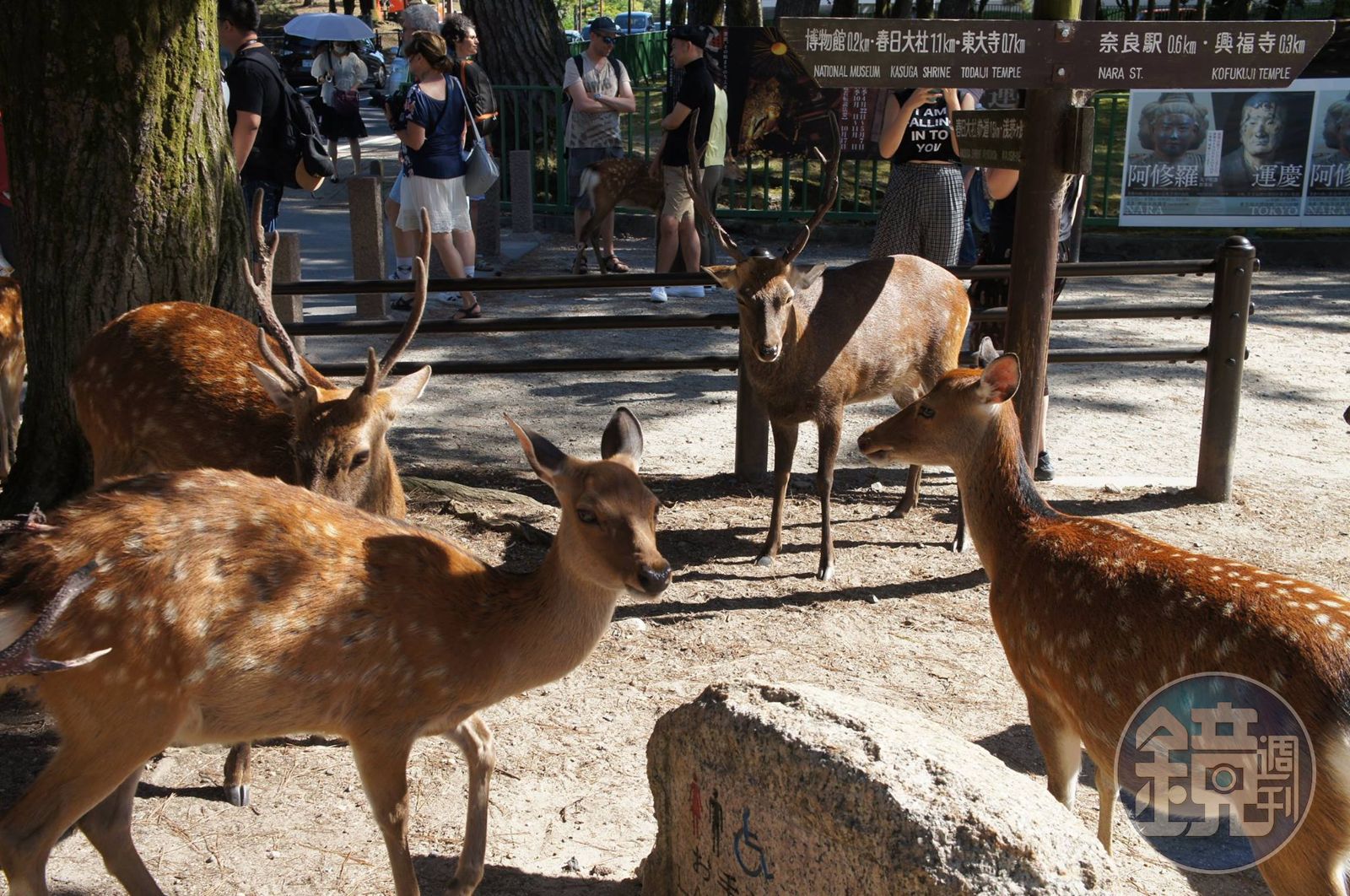 全球觀光客前往奈良公園,必排的行程就包含與鹿合影,許多民眾會自掏腰包購買鹿仙貝餵食,久而久之鹿群都圍繞在小販身邊,一見到旅客持有食物,立刻蜂擁上前搶食,年年都傳出旅客因此受傷消息,而且變得更頻繁。