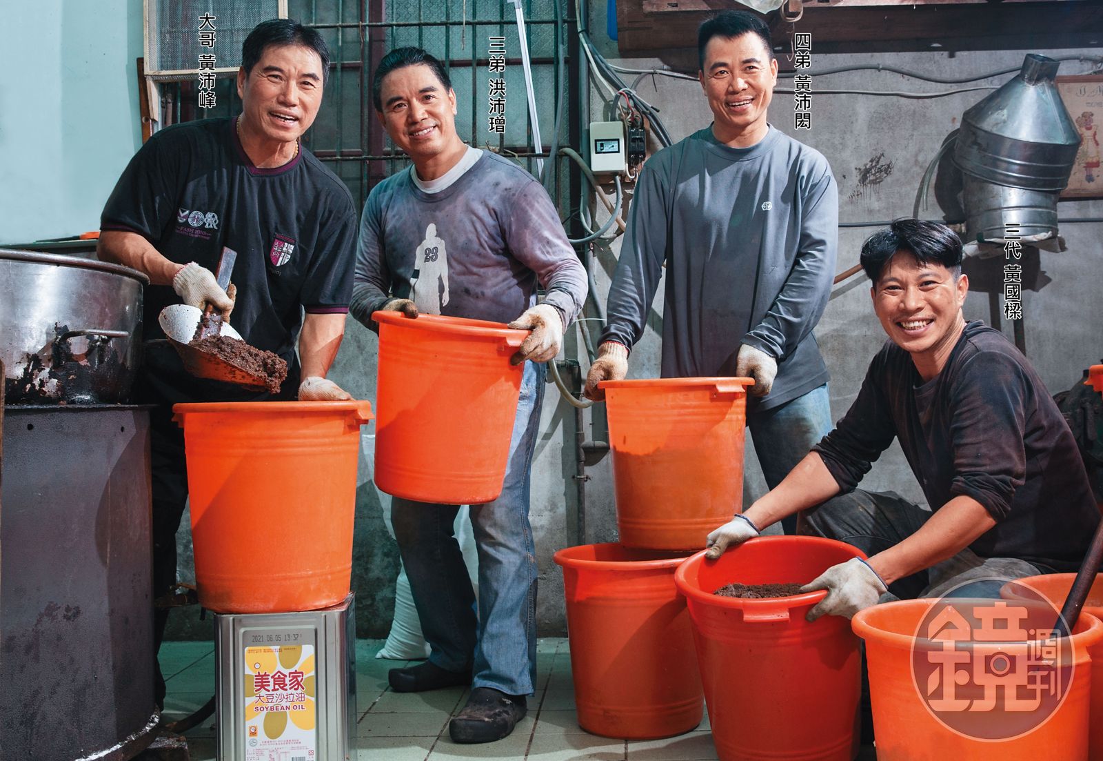第一道東北季風造訪台灣的週間,以大哥黃沛峰為首的黃家第二、三代男丁,圍在一只用了50多年的白鐵大鍋旁,目不轉睛地注視著鍋面油泡消長。高溫油鍋放送著熱能,烘得眾人滿臉通紅,不一會兒已是全身汗。