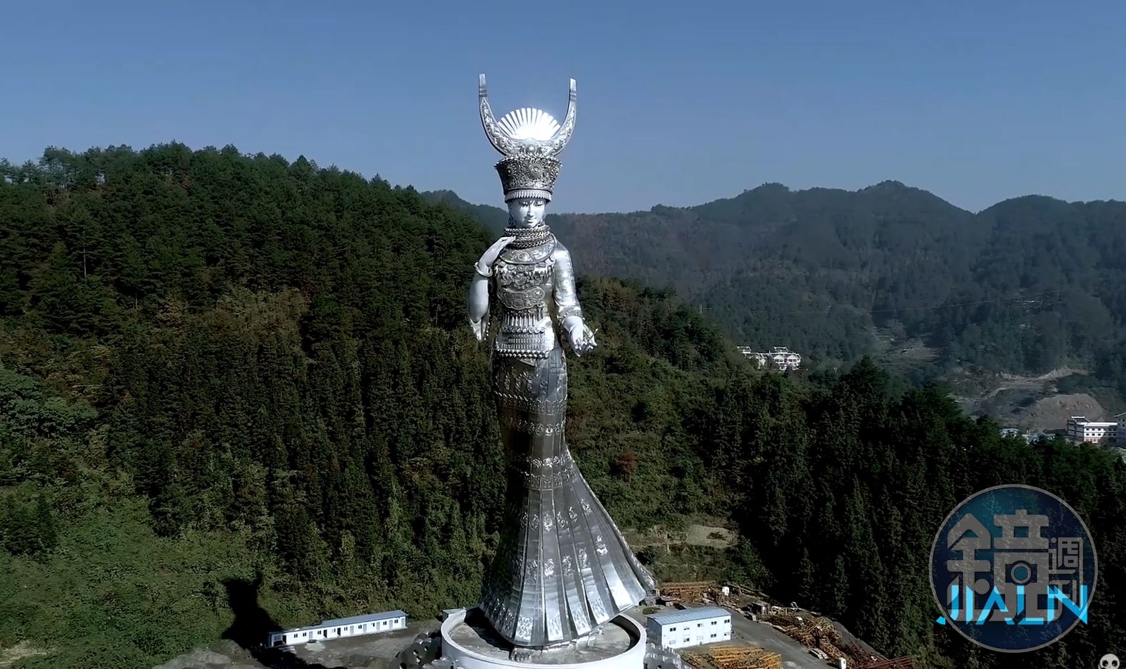 中國貴州劍河縣斥資逾8,600萬人民幣(約新台幣3.74億元),建造一座全世界最大苗族女神「仰阿莎」的雕像,被網友質疑是花大錢打造「形象工程」。(翻攝自Enjoy China Entertainment YouTube頻道)