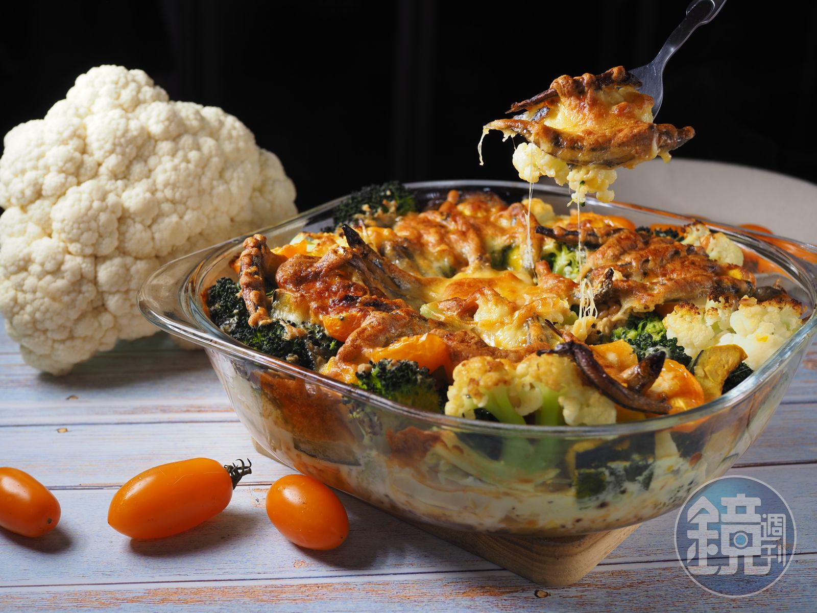 這道菜其實相當簡單,只是要花點時間處理蔬菜。因為是靠烤箱烹調,如果蔬菜體積大,要烤熟相當花時間,所以需要事先切成適口大小,略微川燙或蒸熟。蔬菜種類不拘,可以順便清清冰箱,我用的是白花椰、綠花椰、栗子南瓜、小番茄,如果喜歡的話,櫛瓜、茄子、地瓜、馬鈴薯這類越烤越香的蔬菜都不錯。