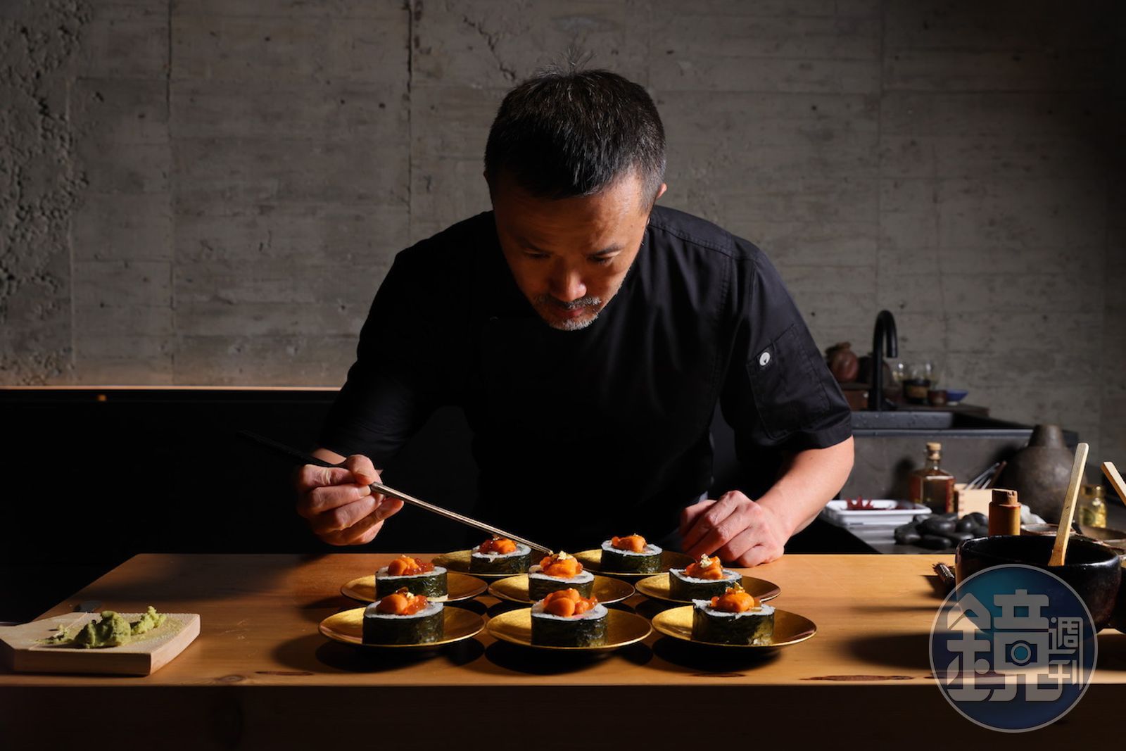 以高大上之姿在10月分全新開幕的花蕉,看準後疫情期間仍有金字塔客層持續鎖定高端料理的消費偏好,晚餐定價9,800元起跳,加上酒水和服務費,一餐至少吃掉萬元,是繼台北最高檔壽司餐廳「Adachi足立」之後,與台北文華精品「鮨增田」並列為第2高價的板前壽司。