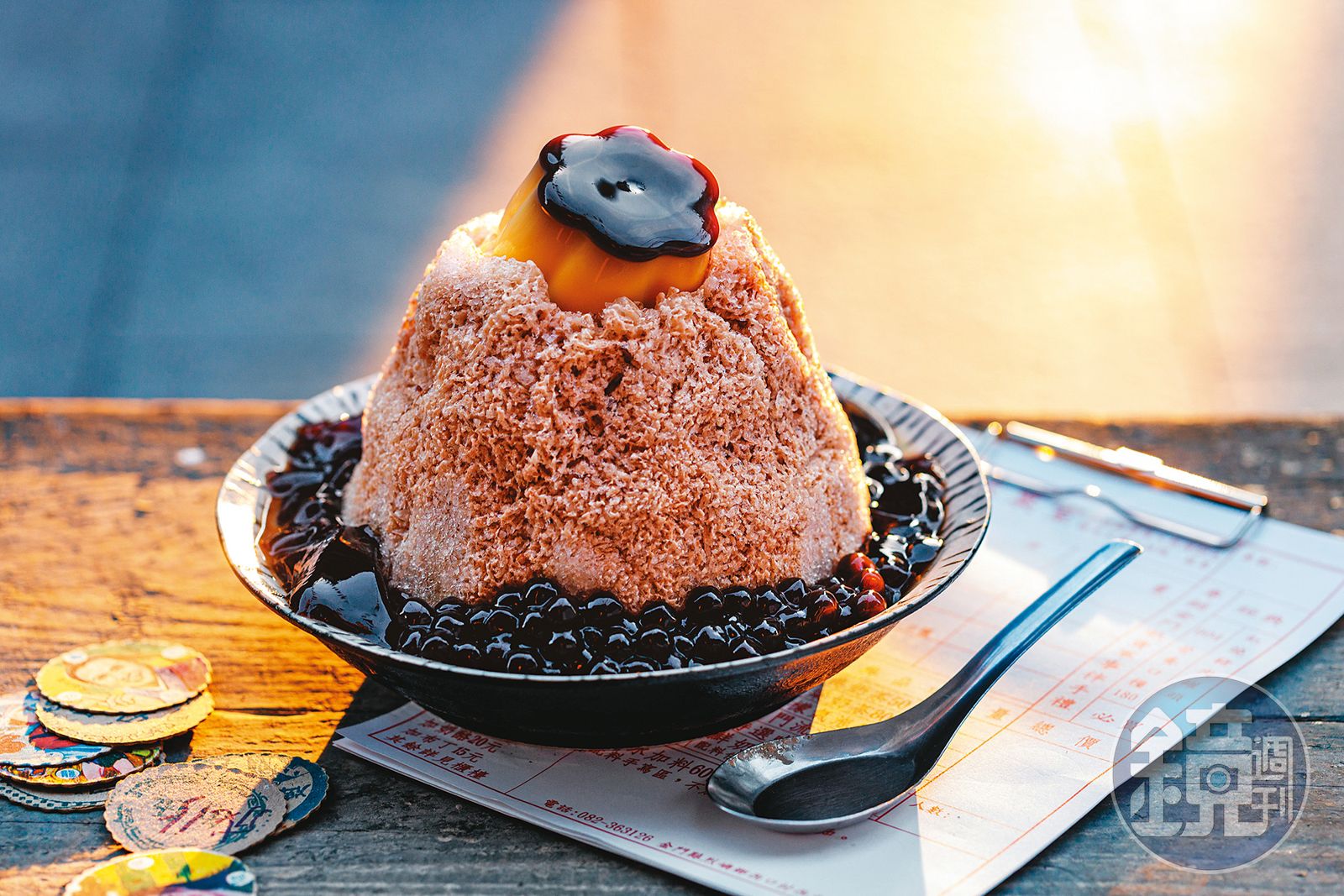 翻開復古菜單,彷彿每款冰品都在向我招手,家揚推薦第一次來的人,一定要品嘗他母親妙芷精心熬煮的「蜜芋頭冰」,搭上乳香濃郁的奶酪,更加突顯這道冰品的芋頭香氣與綿密口感。另一款「奶茶冰」,使用香濃奶茶醬製成刨冰,淋上分量十足的珍珠、仙草與布丁,同樣深受遊客喜愛。