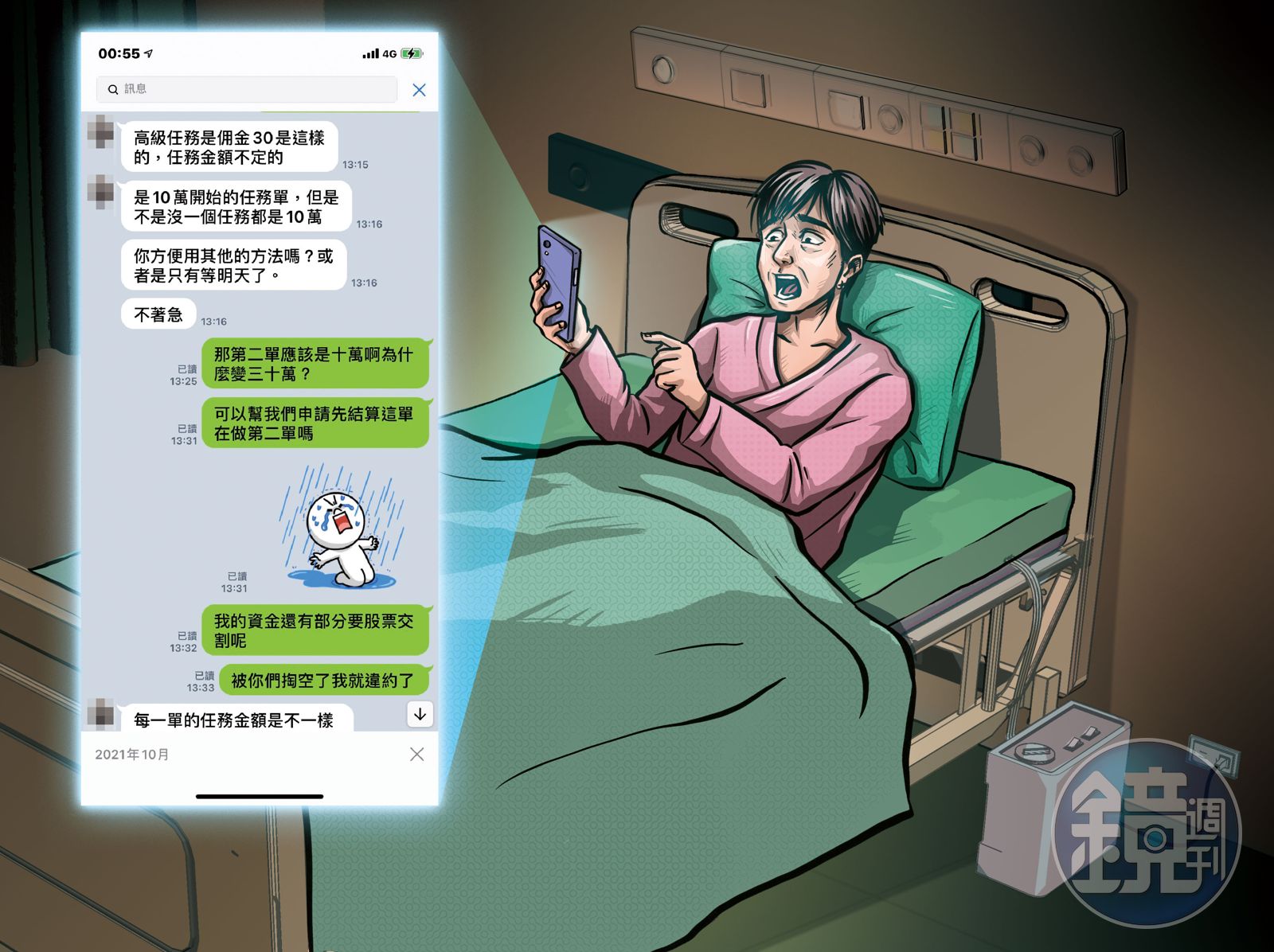 家住台北市文山區的56歲劉姓婦人向本刊投訴,指她去年10月10日因病住進北投振興醫院,10月24日收到廣告簡訊,加入一個LINE群組,沒想到卻是惡夢的開始,當她驚覺受騙向165反詐騙專線及警方求助,卻被消極推託,讓她陷入要賣房還款的窘境。