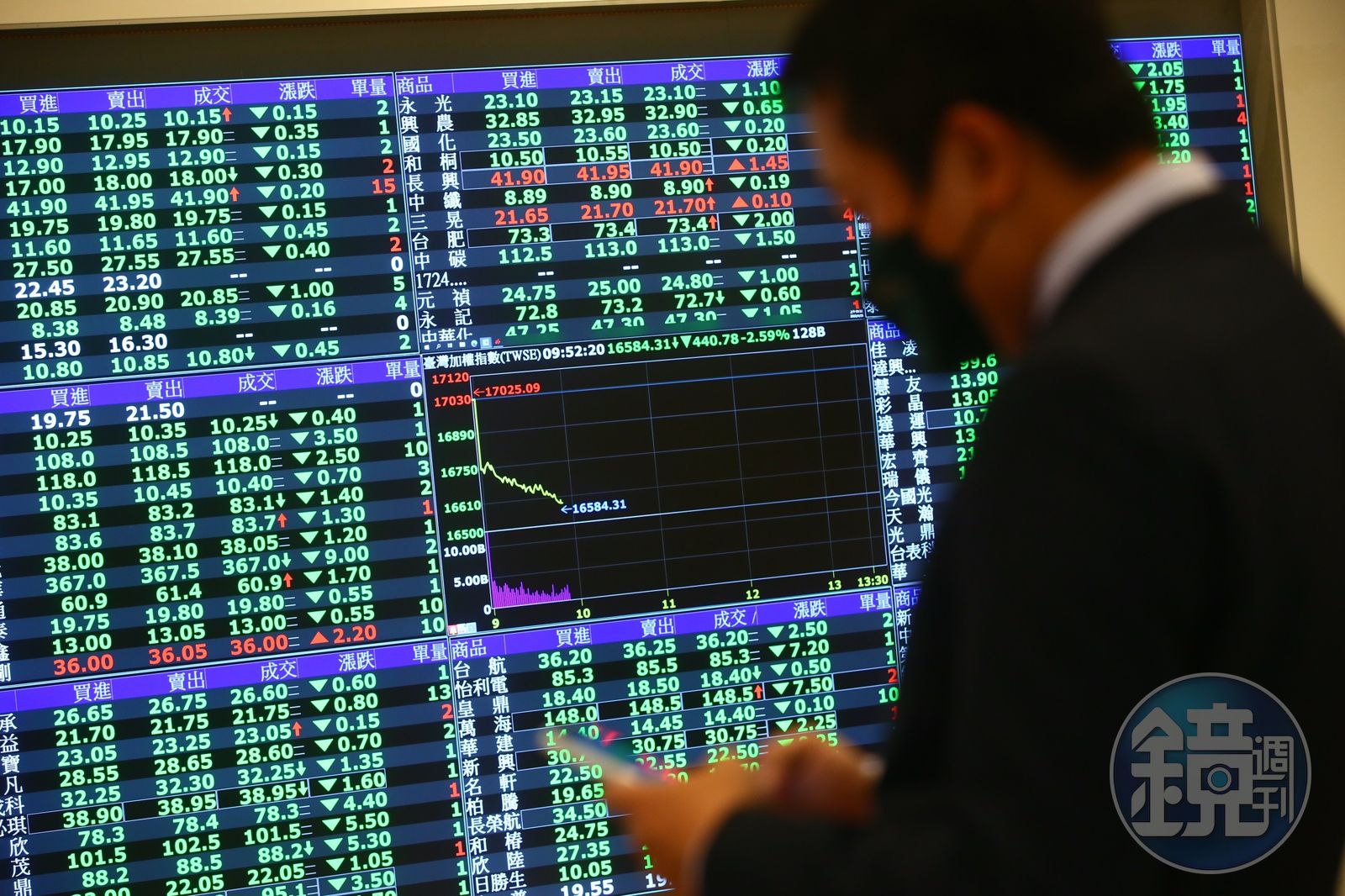 在國際經濟局勢與國內疫情的內憂外患下,恐慌指數(VIX)飆升2成,不但台積電下殺至546元,為2021年5月以來首見,加權指數一舉失守前波低點16764.78點,櫃買指數更是嚇趴跌3%以上,顯見中小型類股賣壓力道甚巨。
