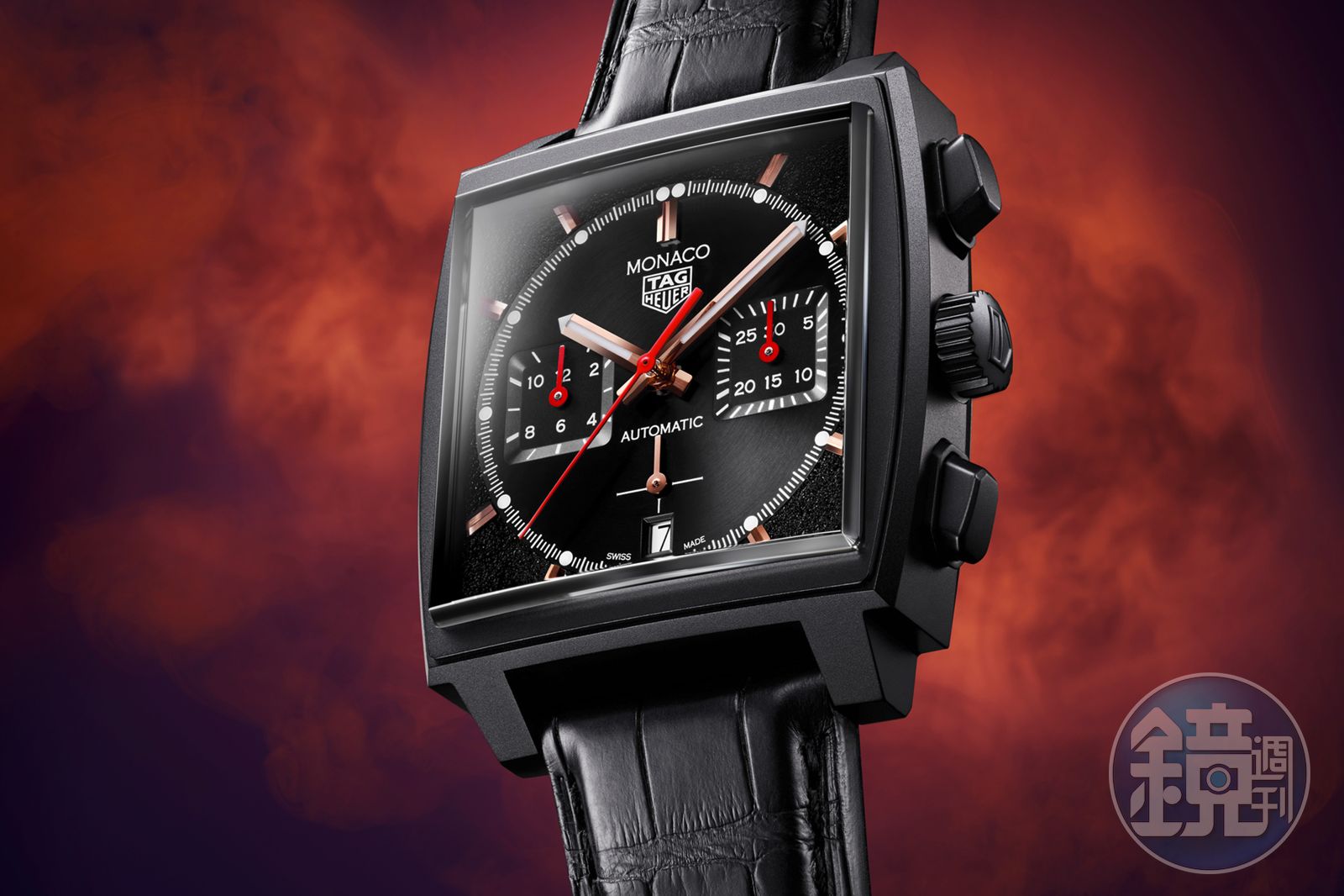1969年誕生的Monaco系列,名稱取自F1摩納哥大獎賽(Monaco Grand Prix),藉此強化計時碼錶與賽車運動之間的連結(當然,這中間包含著第四代傳人Jack Heuer對賽車的狂愛),後續品牌更旋即成為該賽事的官方計時夥伴。Monaco系列後續推出過不同型號,其中1970年推出過一款被暱稱為「Dark Lord」的Heuer Monaco Reference 74033N,錶款使用了當時還很少見的全黑塗層因而得名,並受到玩家高度關注。這次的新的Monaco特別版腕錶重現當年Dark Lord的外貌,以現代的技術規格重新演繹。