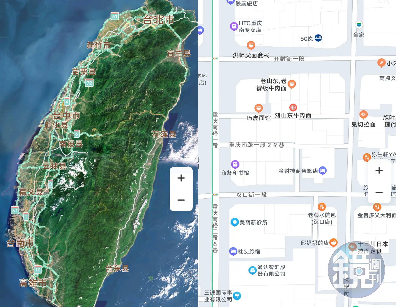 中國地圖可精確顯示台灣街道一事今(5)日在微博引發討論,中國媒體人張曉磊上午發文稱,中國的百度和高德地圖都悄悄更新了台灣的衛星與2D地圖,衛星地圖十分清晰「和很多的大陸城市一樣」,並將此歸功於「北斗衛星的功勞」,更盛讚:「民用的如此,軍用的就更別提了!」