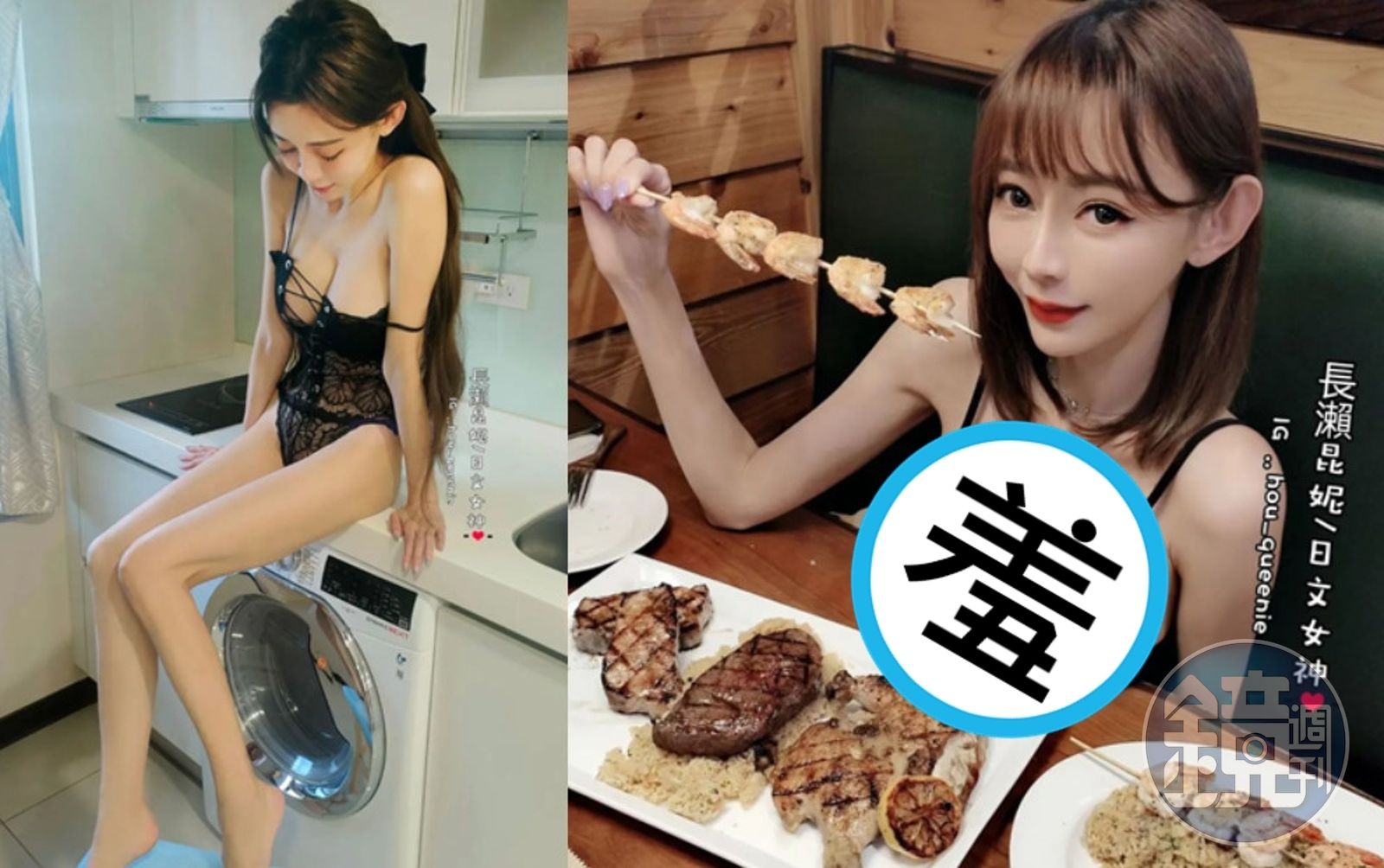 網紅長瀨昆妮近日跑到桃園美式餐廳享用牛排,穿著細肩帶小背心享用牛排與烤蝦等美食,隨手將切牛排等桌邊照上傳社群媒體與粉絲分享,辣照隨即引來忠實粉絲注目,大呼:「牛排味美又多汁~ 但是少了妳餵,總是食不知味」,還有人卻因為桌沿上雪白UU更引人注目,歪樓表示:「牛和乳真的很難選擇,暈了!」;還有人表示「讓人不知道要看哪裡了」。