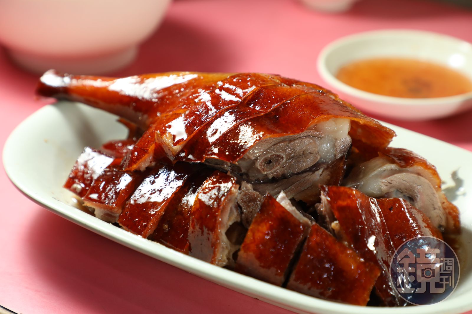 待燒鵝上桌,一層薄薄的脆皮嫣紅油亮,下面一層脂肪要掉不掉地掛在皮上,腿肉結實、胸肉軟滑。夾起第一塊胸肉入口,鵝皮脆而不韌,鵝肉嫩滑,皮下脂肪越嚼越香,果然把其他燒鵝甩出幾條街。接著把第二塊腿肉泡在瀨粉中,鵝油滷汁混入原本清爽的湯頭中,把清淡的瀨粉襯托得有滋有味。