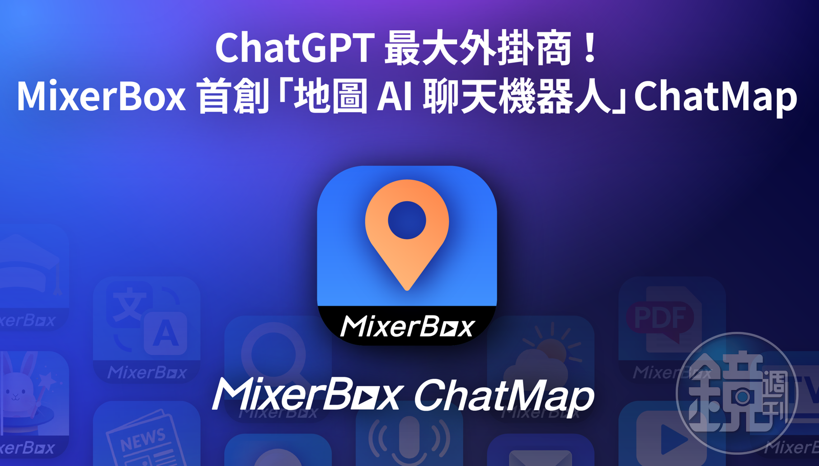 MixerBox ChatMap 是 ChatGPT 平台上第一款針對真實世界地圖資訊所設計的外掛,也是世界首創的地圖 AI 對話機器人,用戶只要像聊天般輸入問句,AI 就能自動分析語意,並且回答出最終答案,用戶不需自行篩選資訊,也不需去習慣各種App的介面,是節省時間的利器。