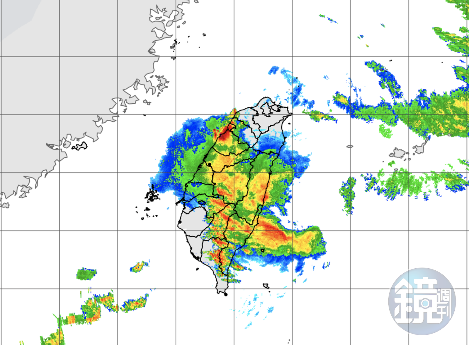 受到颱風外圍環流與西南風影響,中央氣象局針對12縣市發布豪(大)雨特報,苗栗縣「亮紅燈」為大豪雨等級;台中市、南投線、嘉義縣、高雄市及屏東縣為豪雨等級;桃園市、新竹市、新竹縣、雲林縣、台南市及台東縣則為大雨等級。