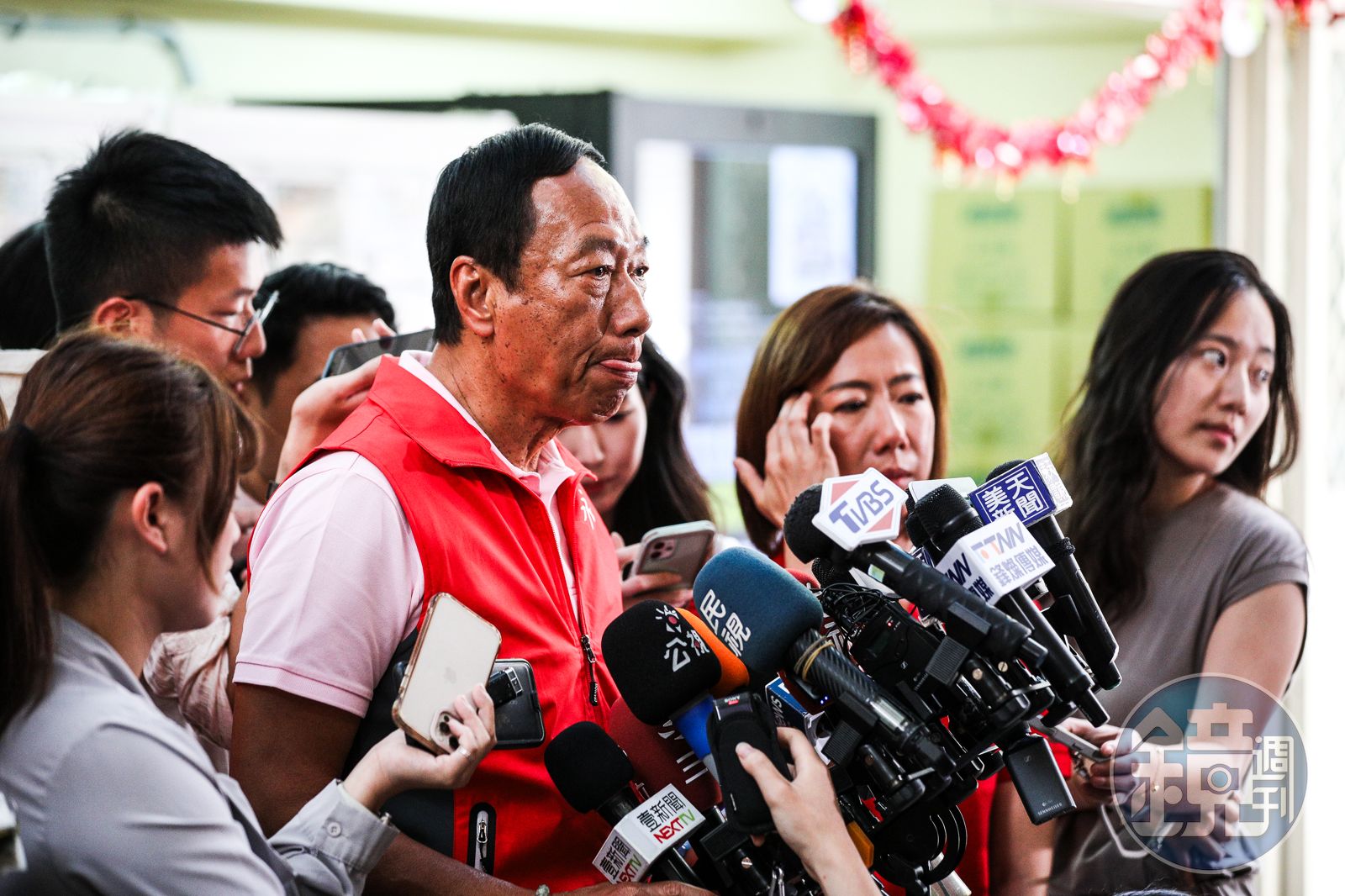 被問到侯友宜來訪卻吃閉門羹,郭台銘重申他沒有預設立場,過去的就讓它過去,不需要一直拘泥在過去,要讓年輕人有機會、壯年人有希望、老年人有安養,打造一個健康和平快樂的新國家、新國度、新社會,如果理念相同就談合作,理念不同就用更有智慧的辦法,讓台灣選出最理想的參選人,將台灣帶向有希望的國度、科技島。郭台銘也再度強調,主流民意希望政權要更替、民意希望改變,他希望順應民意,所以到處走訪基層,等時機到了就會宣布他的下一步。