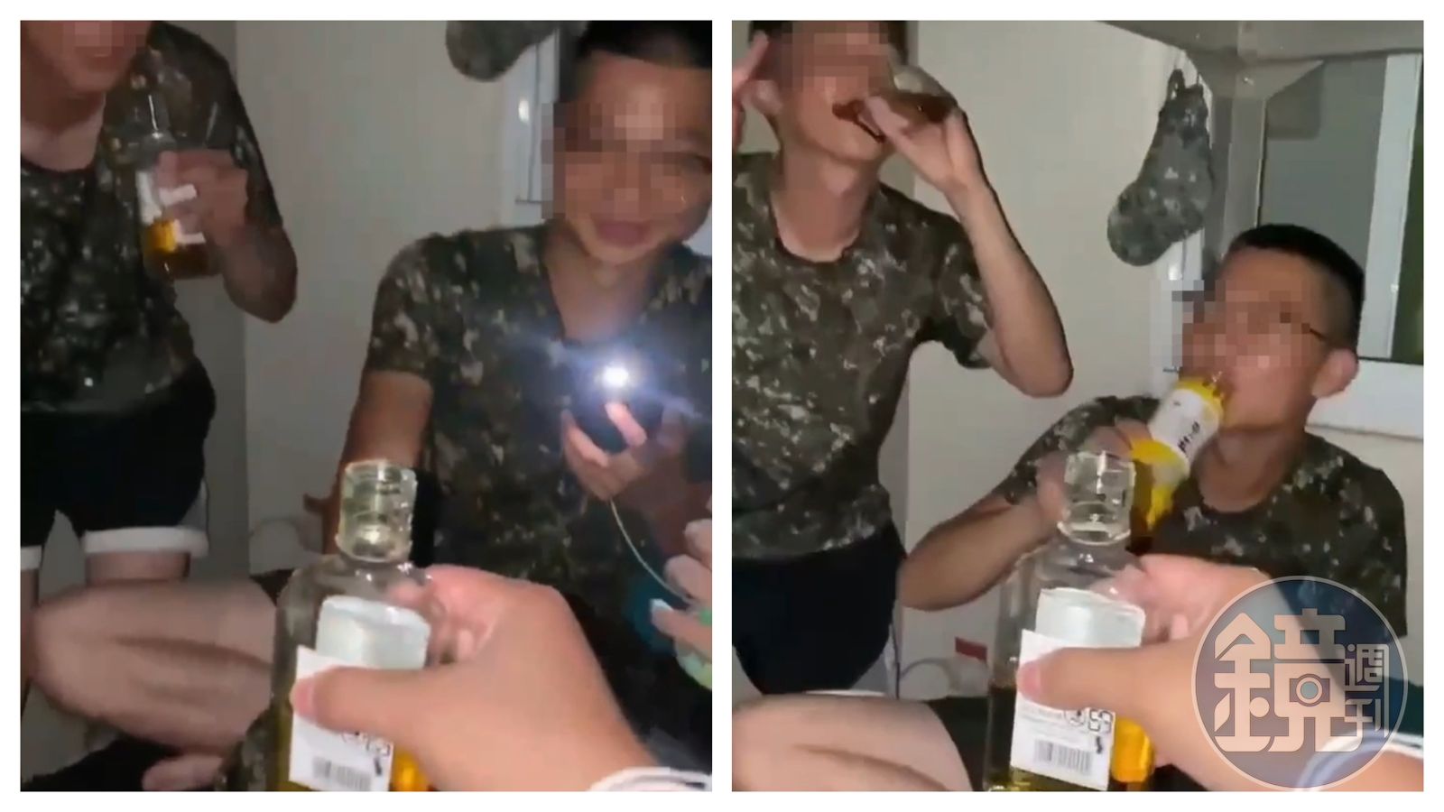 據《記者爆料網》指出,近期網路上流傳4名陸軍584旅官兵,在寢室內飲酒作樂的影片,1人拍下其他3人嘻皮笑臉地喝酒、飲料,還開心對鏡頭比YA,還有1人傳訊息給其他友人,「我們一人一瓶」「我們偷渡進去的」「這樣已經一個禮拜了耶」「昨天睡不著找班長喝酒」,友人則傻眼「根本去度假」。