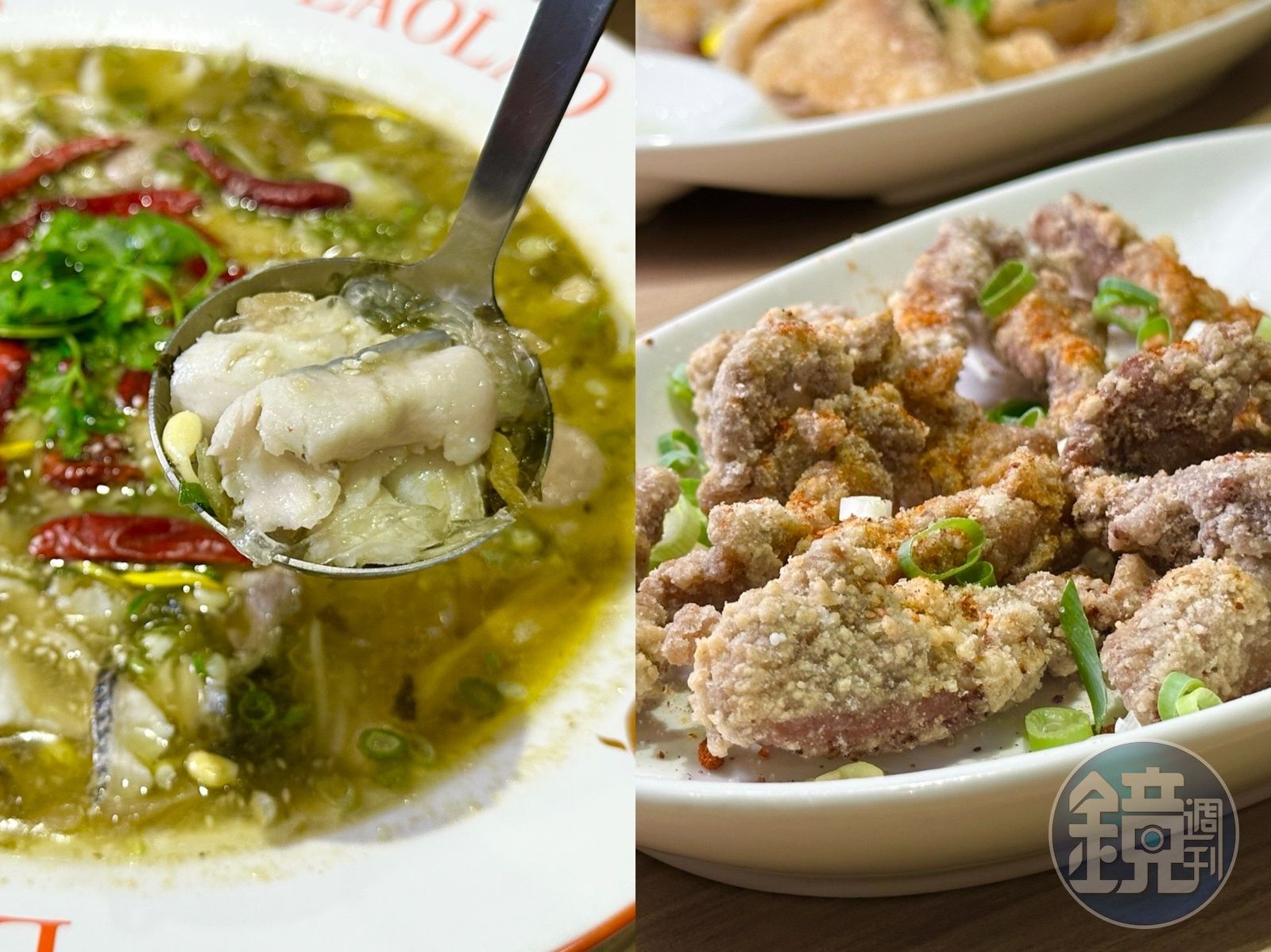 不吃辣的人,也有「白湯酸菜魚」可以選擇。出餐前會澆淋爆香過芝麻、蒜頭的熱油,湯汁以酸、甜、麻的味覺呈現,拿掉辣感,確實會缺一些層次上的變化。