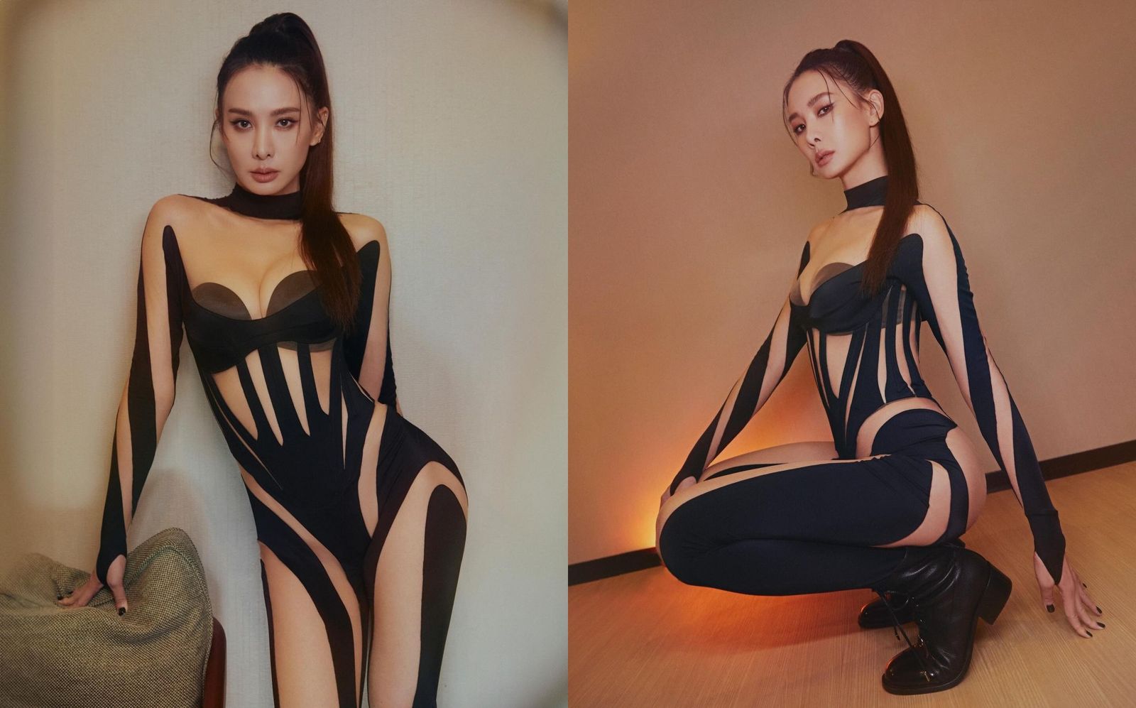 影視兩棲的藝人安心亞跨年演出別出心裁,以「虛擬皇后」主題亮相,穿著鏤空設計緊身衣演唱,深V馬甲裝若隱若現十分撩人,轉身大方展現渾圓蜜桃臀,屁股蛋讓人垂涎欲滴。身材高挑的安心亞私下為戲努力減肥,造就172公分、54公斤無一絲贅肉的火辣身材。