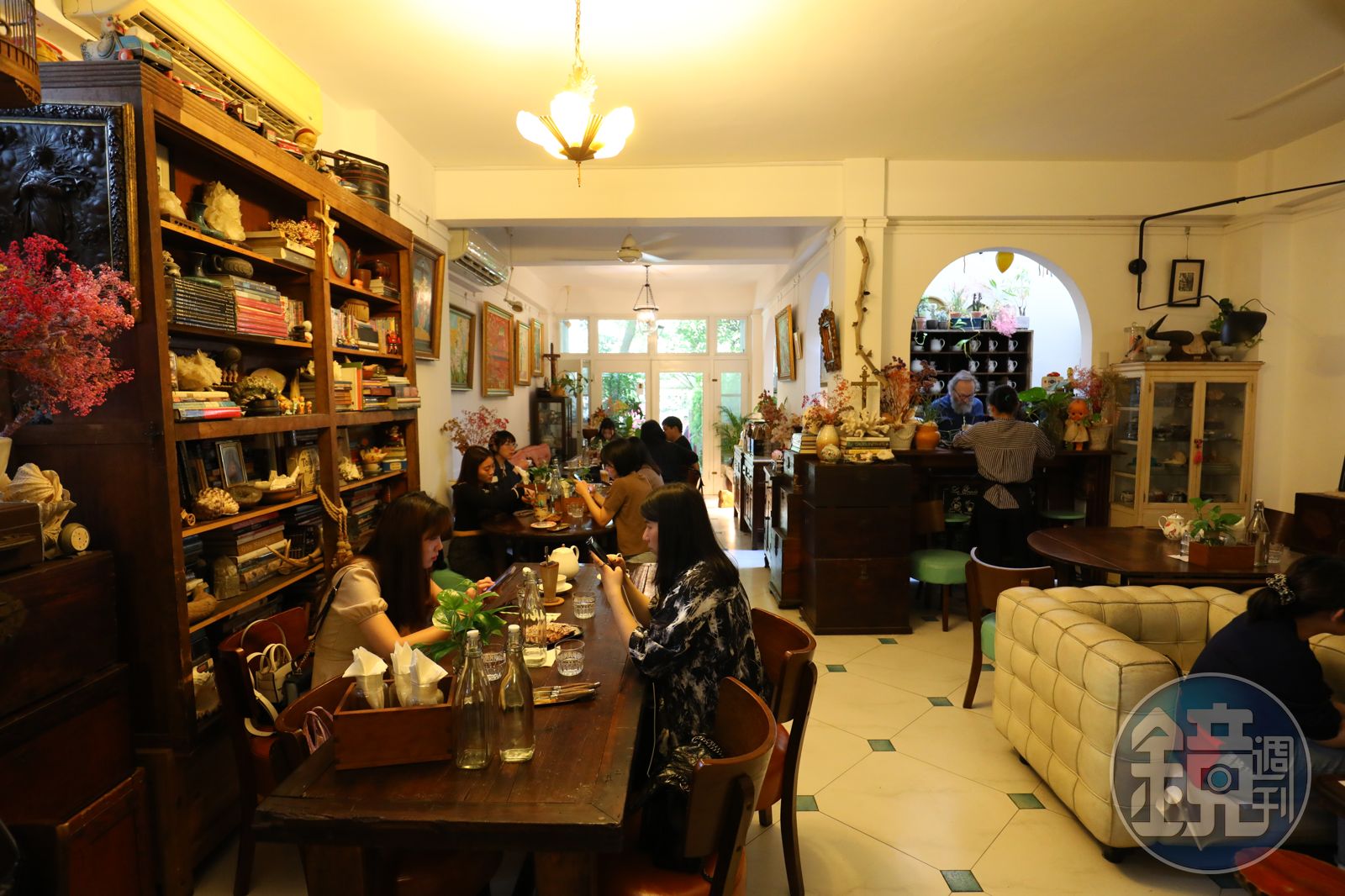 府城的午後陽光從天井洩落地面,內用空間就像一座溫室花園。看似精心打造的咖啡廳,其實是Benoît的家,將法式繁複之美妝點得淋漓盡致。店內隨便瞥見一處小角落都是亮點。儘管過往Benoît叱吒商場,最初也不懂如何經營好一間咖啡館,「我還記得一開始找朋友來家中試試,沒想到第一道菜上桌,就花了3小時。」他與妻子重新調整,從簡單拿手的品項出發,他試著復刻懷念、但在台灣卻難尋的傳統甜品「法式杏仁可頌」,Benoît乾脆自己研究食譜,卻意外成了店內熱門招牌,剛出爐的可頌外酥內軟,外層滿滿杏仁片毫不手軟,口感扎實不油膩,吃完還想再來一盤,只好再掏腰包買了帶走。
