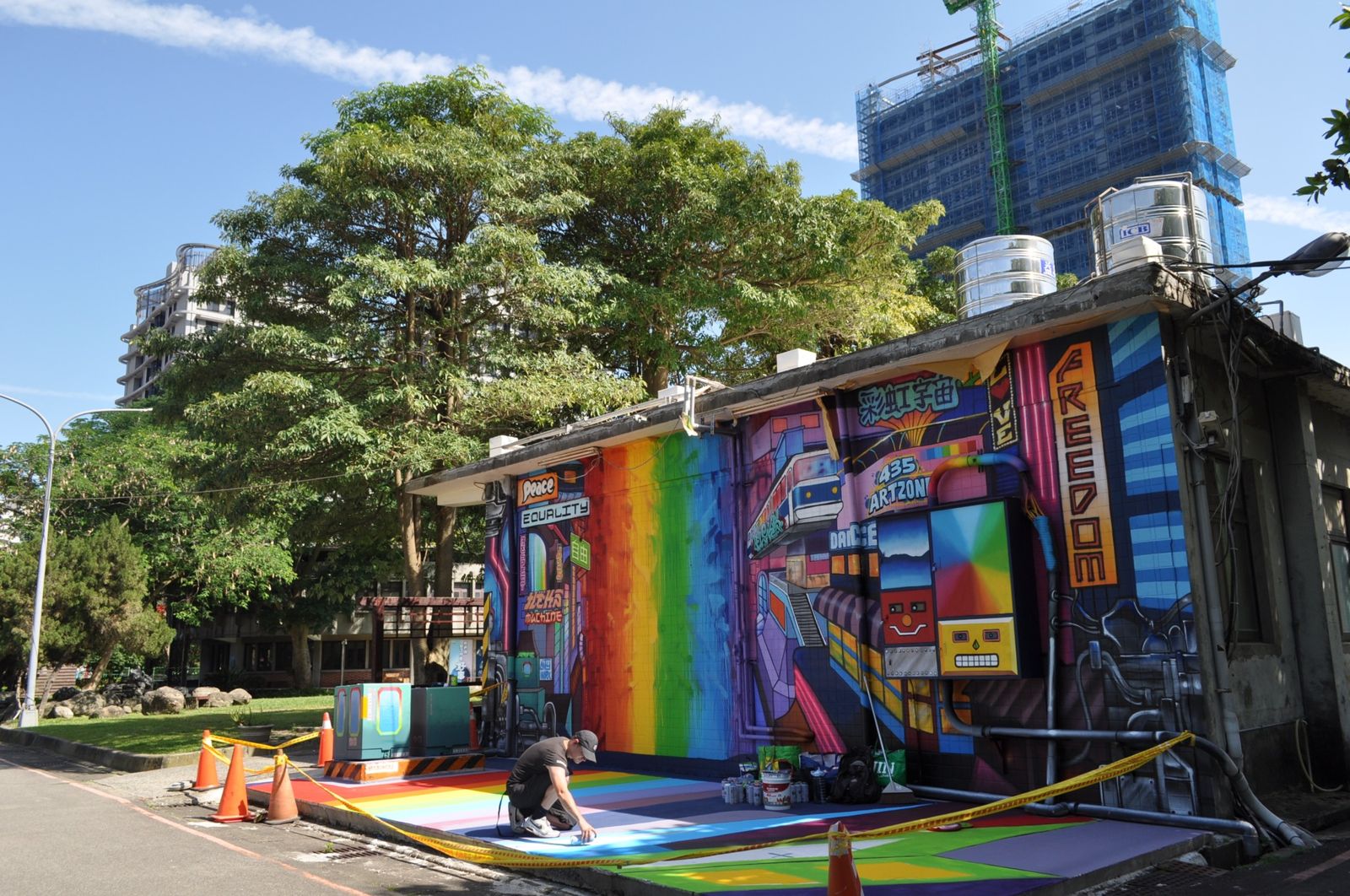 創作者龍阿水是荷蘭知名的塗鴉藝術家,曾在4大洲進行創作旅行,現駐紮於435藝術聚落。龍阿水以不受限的創作風格,體現了「自由」的概念;此次作品歷時數月完成,結合「6色彩虹」與「宇宙」元素,象徵性別身份的多樣性、包容與自由。